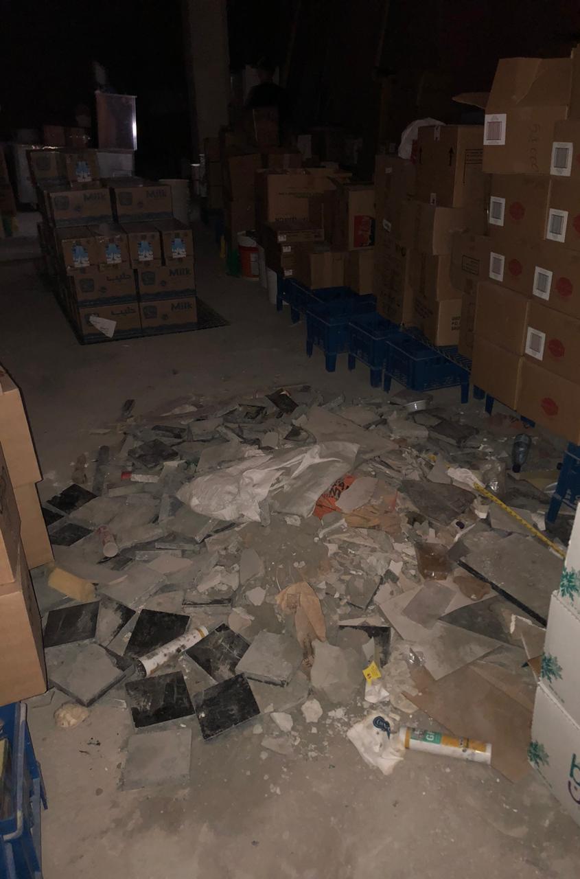 ضبطت بلدية غرب الدمام، أمس الأحد الموافق 11/01/1442هـ، طن ونصف الطن مواد غذائية وأكثر من ٦٠٠٠ لتر سوائل داخل أحد المستودعات لأحدى الكافيهات بمجمع تجاري.