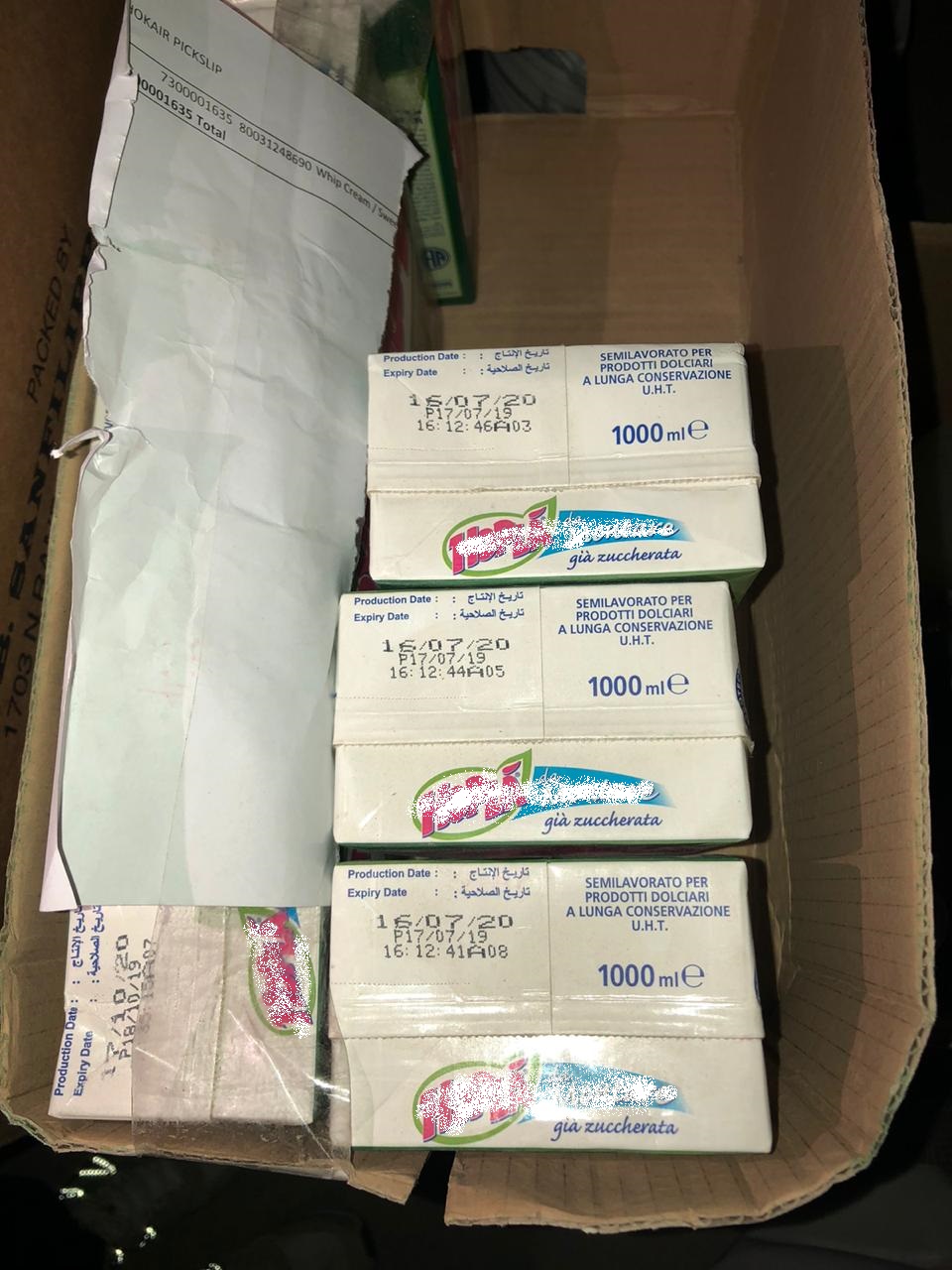 وأشار المهندس القحطاني أنه تم ضبط أكثر من طن ونصف من المواد الغذائية، و ٦٤٠٠ لتر تتنوع ما بين الحليب ومشتقاته و المياه المعلبة وتم التحفظ على جميع المواد الغذائية تمهيدا لإتلافها.