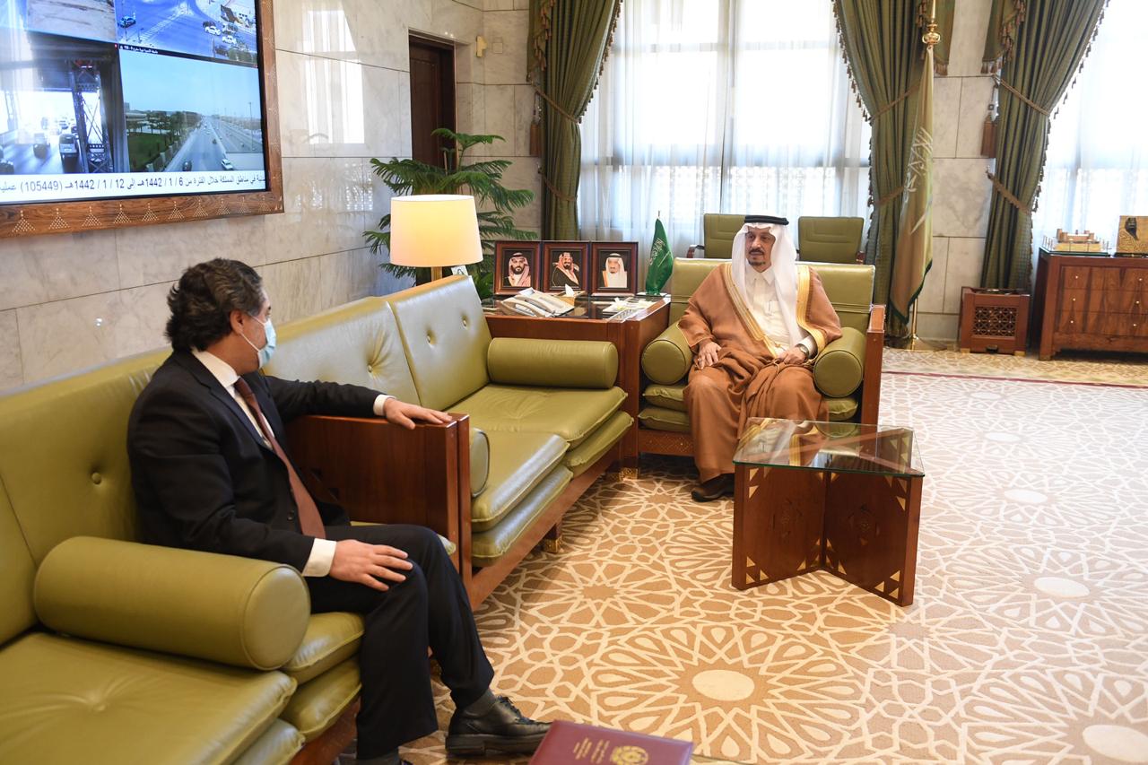 سمو أمير منطقة الرياض يستقبل سفير جمهورية أفغانستان https://www.alshaamal.com/?p=113137 تم النشر في: 2 سبتمبر، 2020 4:36 م 383080 صحيفة الشمال الإلكترونية رحاب ناصف استقبل صاحب السمو الملكي الأمير فيصل بن بندر بن عبدالعزيز أمير منطقة الرياض في مكتبه بقصر الحكم اليوم, سفير جمهورية أفغانستان الإسلامية المعين لدى المملكة أحمد جاويد مجددي.