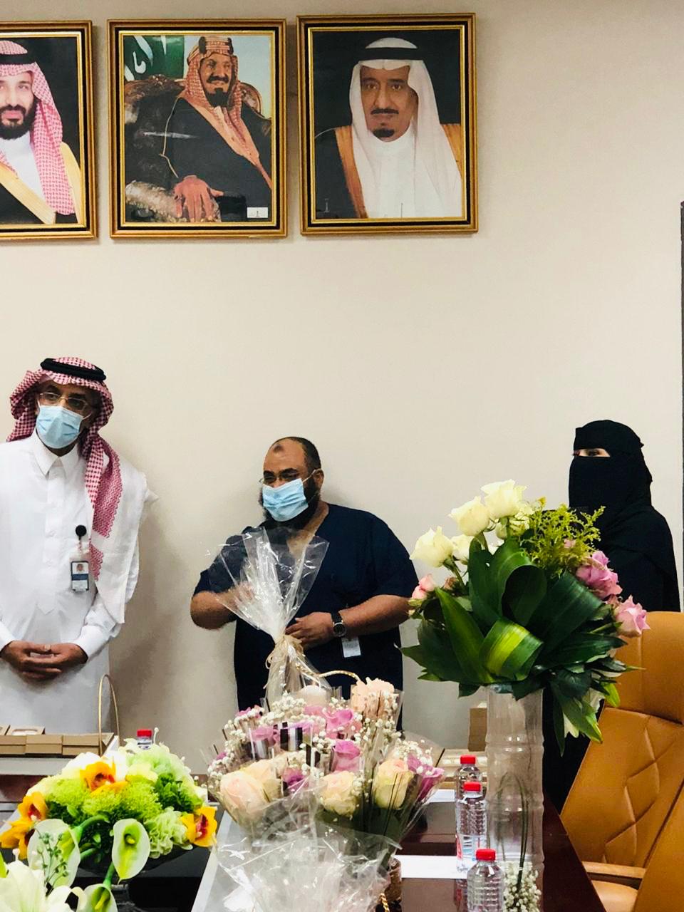 من جانبه شكر الدكتور خالد القحطاني فريق ورود نوارة على زيارته وتقديمه هذه الهدايا التي تركت أثراً جميلاً في نفوس الجميع، مشيداً بالأعمال التطوعية النوعية التي يقدمها الفريق للمجتمع، وأنهم شركاء نجاح، ومؤكداً اهتمام الصحة بالعمل التطوعي ولا أدلّ من ذلك إنشاء منصة التطوع الصحي التي حققت نجاحاً خلال هذه الأزمة، سائلاً الله جل وعلا أن يحفظ للوطن قيادته الرشيدة وأن يعجل بانفراج هذه الأزمة قريبا بإذن الله.