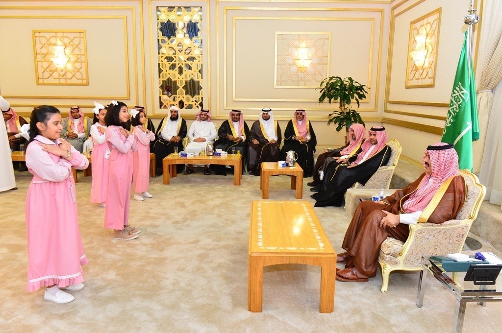 عقد صاحب السمو الملكي الأمير عبدالعزيز بن سعد بن عبدالعزيز أمير منطقة حائل اليوم اللقاء السنوي المفتوح لسموه مع مدير عام التربية والتعليم الدكتور يوسف الثويني ومنسوبي التعليم وأولياء الأمور وبمشاركة عدد من الطلاب والطالبات الصغار الذين قدموا لوحة إنشادية بمناسبة بدء العام الدراسي الجديد .