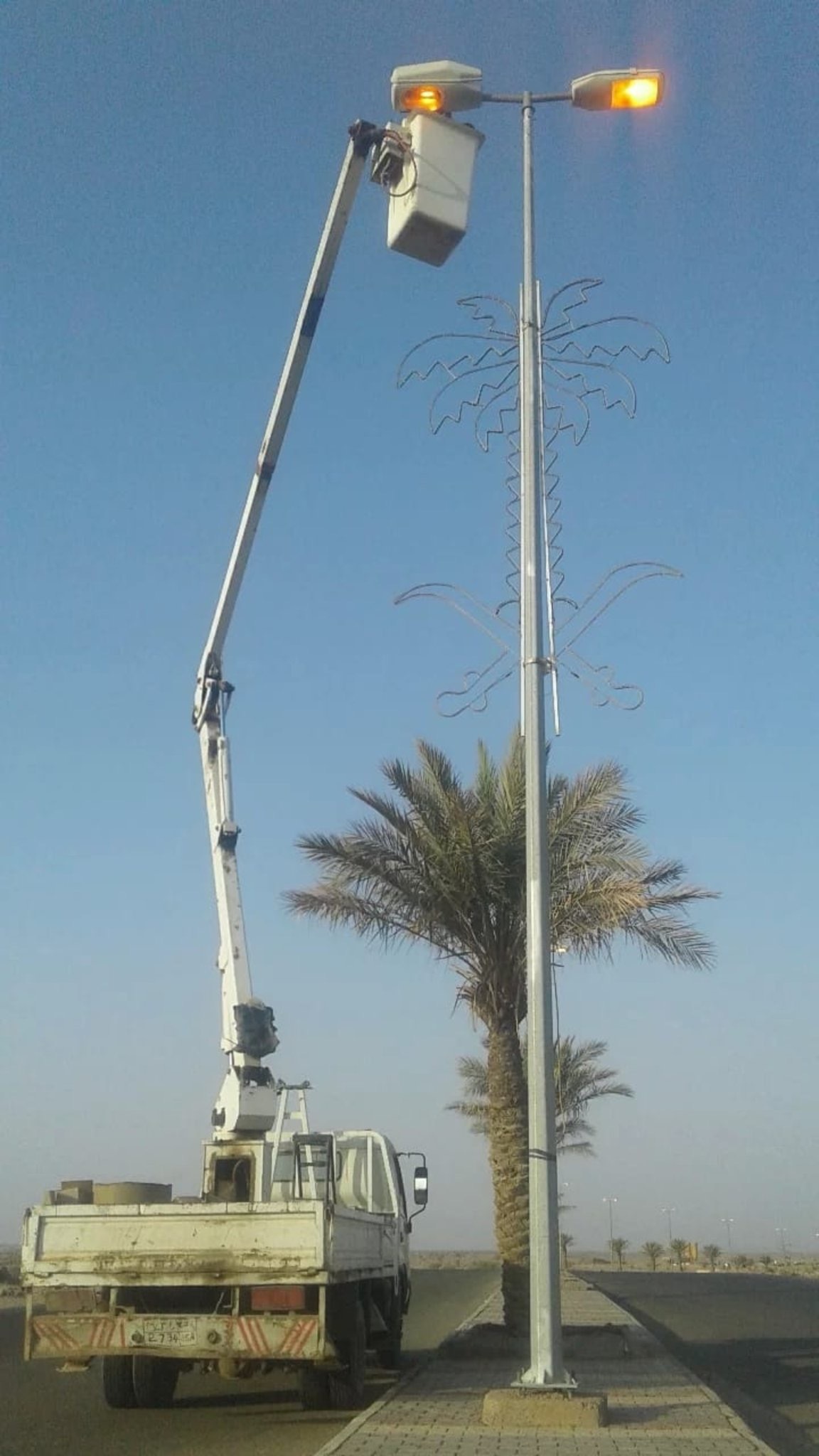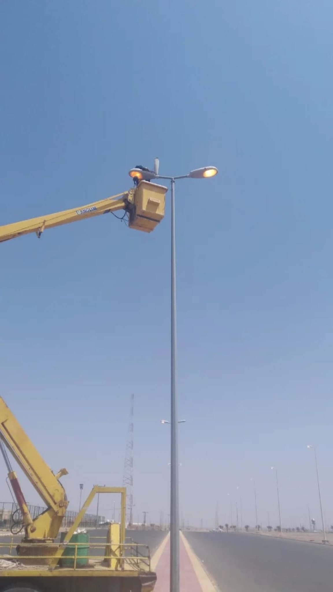وتقوم فرق الكهرباء بأعمال صيانة الفوانيس في أعمدة الإنارة في شوارع الخدمة للطريق العام , وطريق الحائط , والجزر الواقعة قرب دوار المدينة.