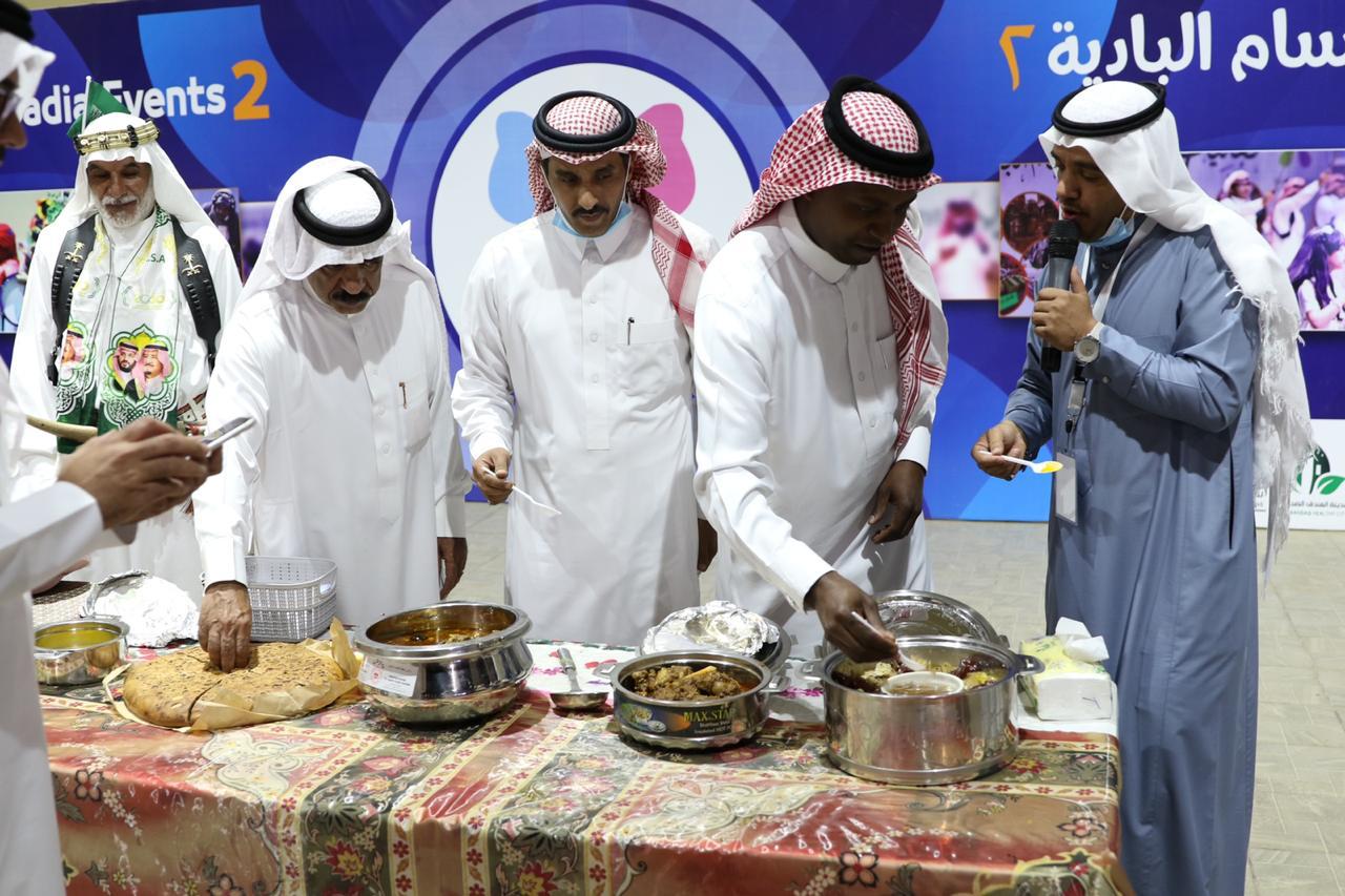 شهد مسرح فعاليات وسام البادية بحديقة الفراشة تواجد العديد من الأسر لتقديم أفضل ما لديها من المأكولات الشعبية تسابقت ربات المنازل في تقديم أفضل أطباق شعبية شملت الخبزة المقناة والعريكة والعيش والجريش والمعرق والعصيدة .