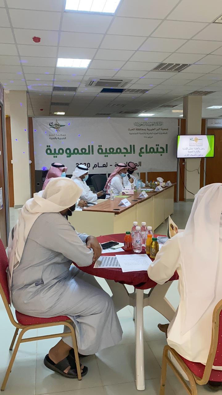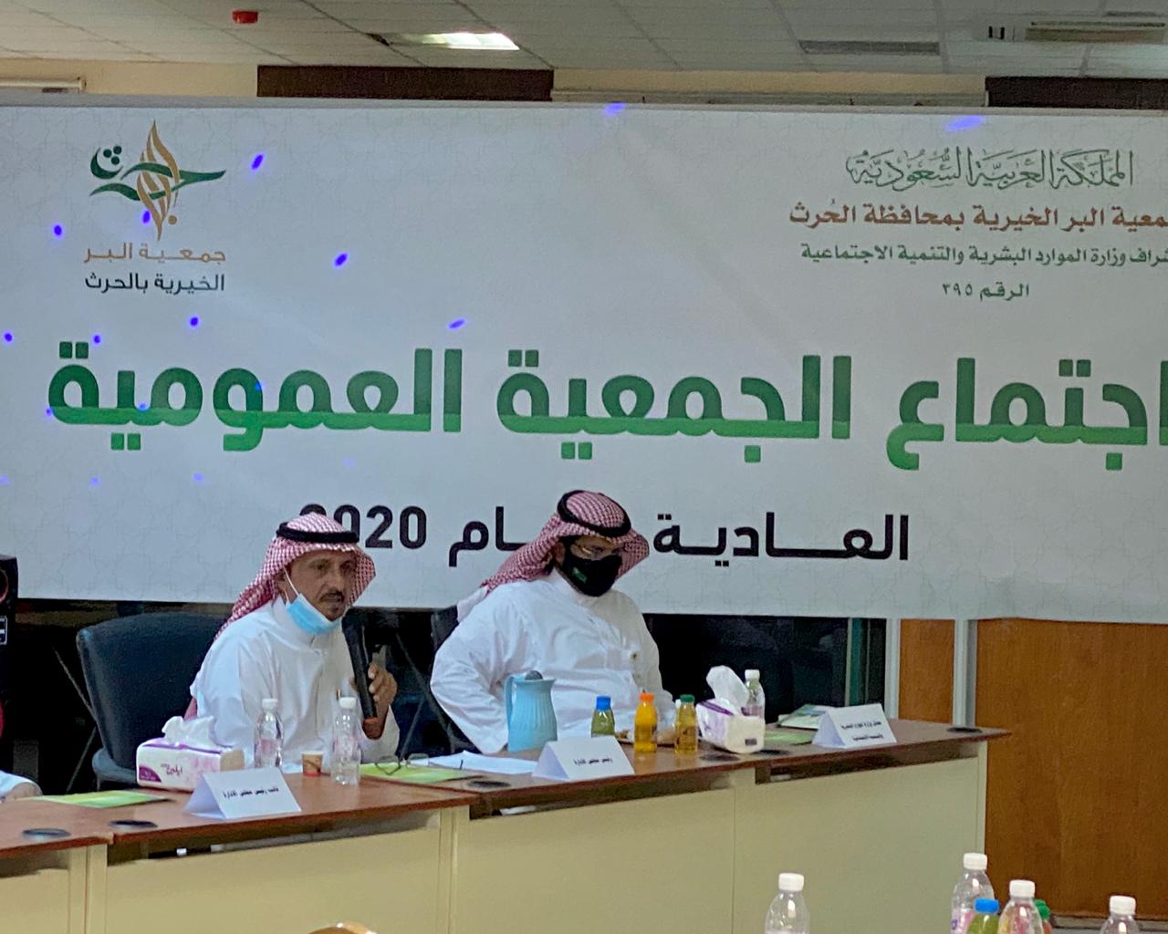 عقدت جمعية البر الخيرية بمحافظة الحرث مساء هذا اليوم السبت 12/09/2020 اجتماع الجمعية العموميه العادي للعام المالي 2020م بمركز التمكين التابع للجمعيه باسكان الحصمه برئاسة رئيس مجلس الادارة الاستاذ / احمد الهزازي وممثل الوزارة الاستاذ نايف الحكمي وبحضور أعضاء الجمعيه العمومية حيث بدأ الاجتماع بكلمة لرئيس مجلس الإدارة رحب في مستهلها بالحضور واستعرض ما تم انجازه من مشاريع وبرامج كان لها بالغ الاثر في مساعدة مستفيدي الجمعية خلال احترازات جائحة كورونا