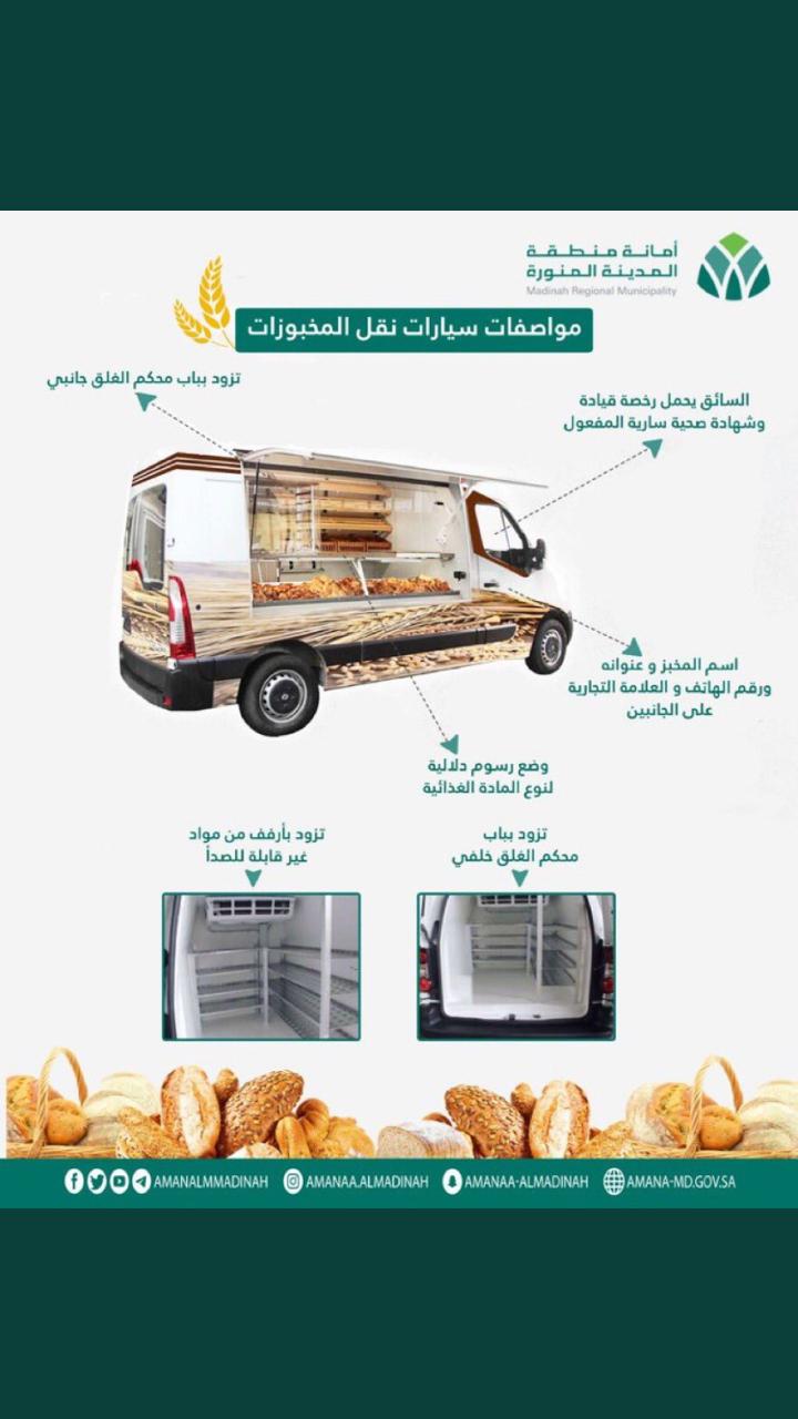 ‏أمانة ⁧‫المدينة‬⁩ تعتمد الاشتراطات الواجب توافرها في مركبة نقل المخبوزات