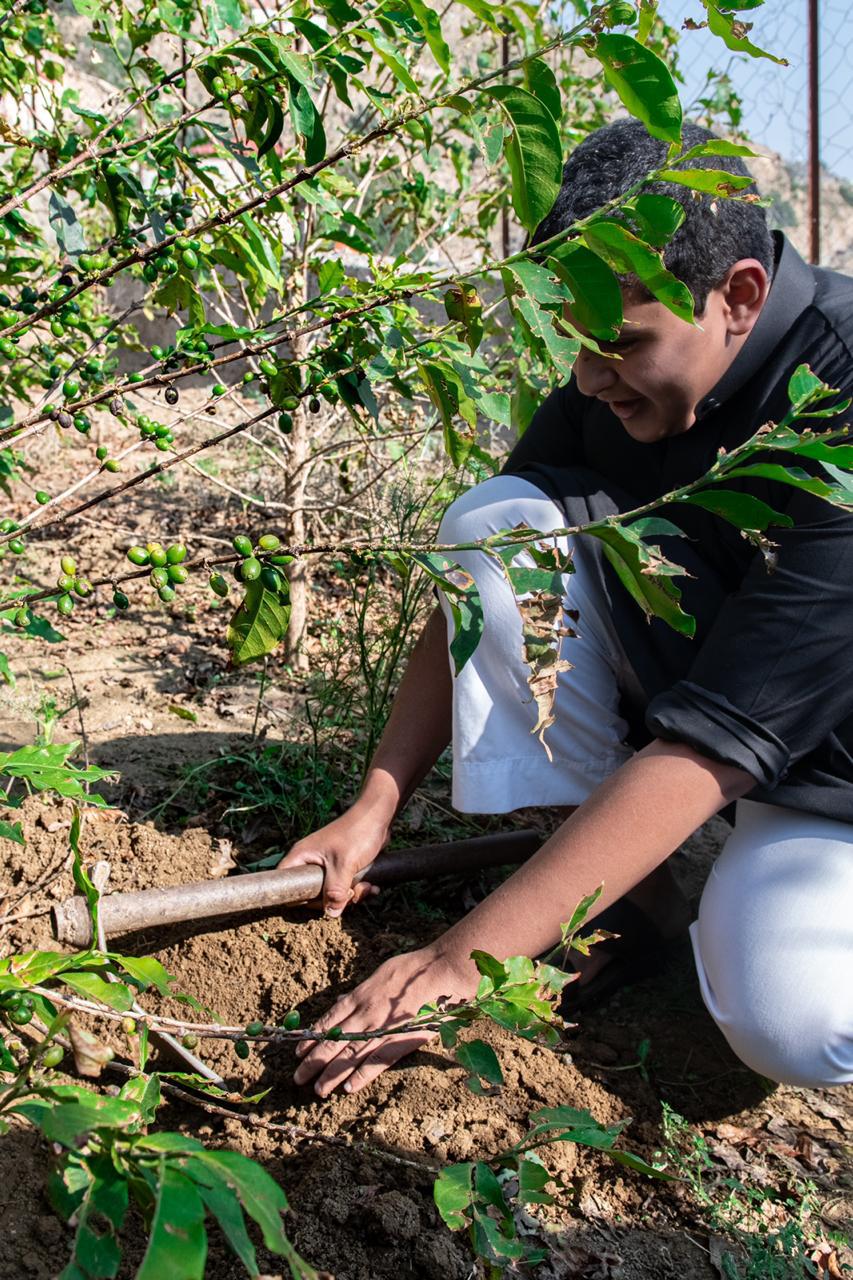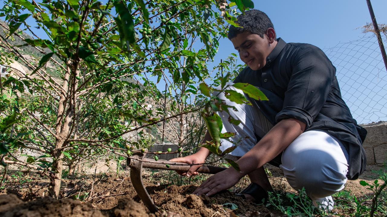 رسم المزارع عبدالله الحريصي ذو 17 ربيعا في جبال الحشر بمحافظة الداير لوحة مميزة في العناية بالبن كأصغر مزارع بن في المملكة , فهي بالنسبة مهنة وهواية وعشق ورثه عن والده الذي وافته المنية تاركا له أشجار البن و بيت مطل على أغصانها.