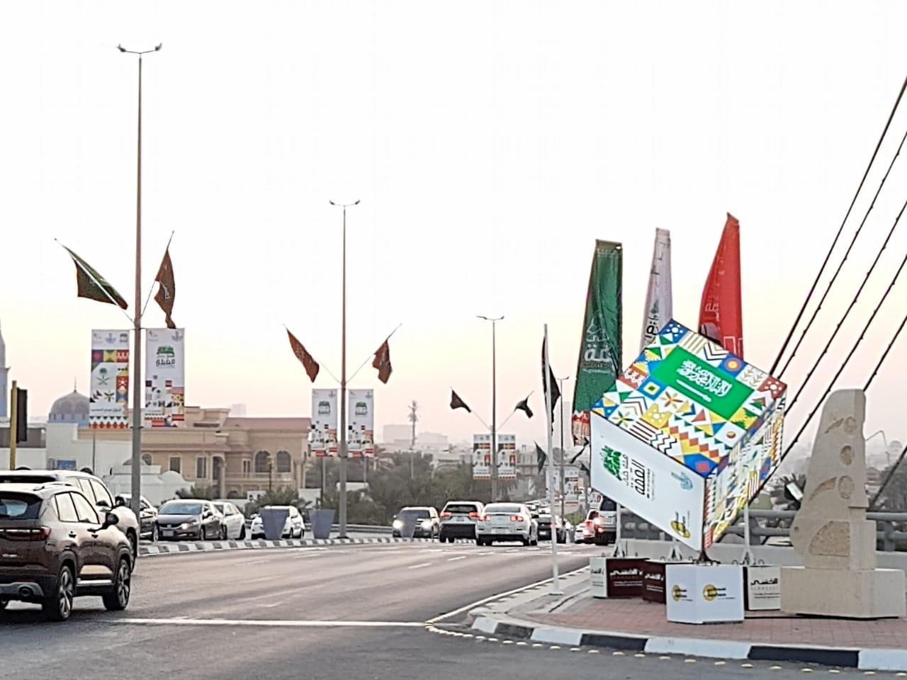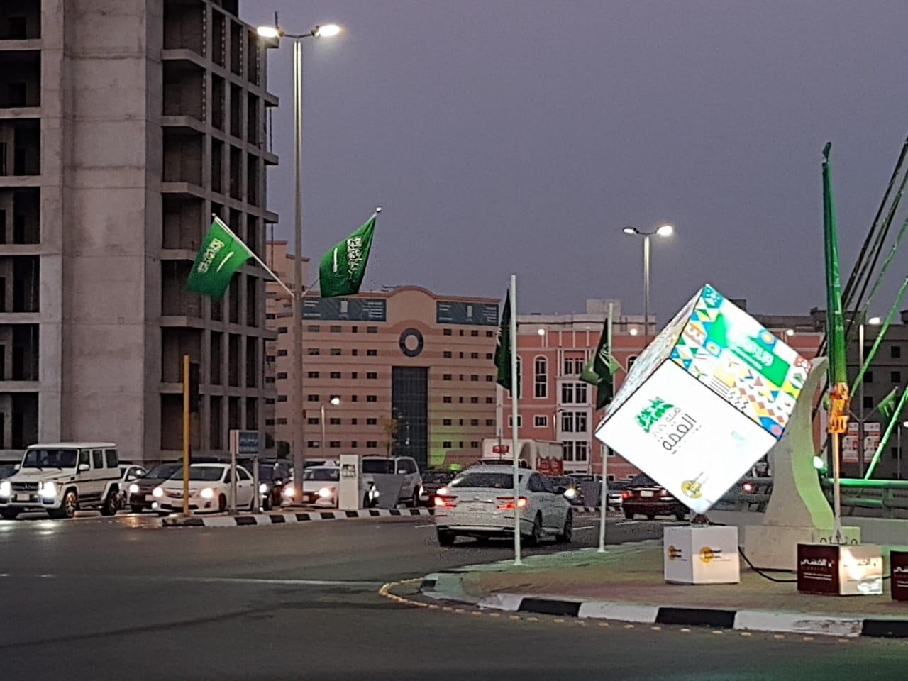وكذلك تركيب التصاميم الخاصة باليوم الوطني في إعلانات الطرق بعدد من الأحجام، بـ120 لوحة بالطرق والميادين بحاضرة الدمام.