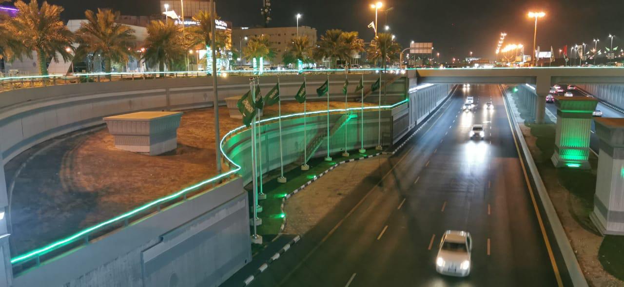 هذا بالإضافة الى تركيب أكثر من 2670 بنر على أعمدة الإنارة، وتركيب نحو 200 من الأشكال الجمالية المضيئة، وتركيب إنارة وتزيين وتلوين ٨ مباني بإضاءة LED city color، وأجهزة الإضاءة المتحركة، وعرض تصاميم اليوم الوطني، وعروض الفيديو ماب الخارجي لموقعين على ستاند خشبي.