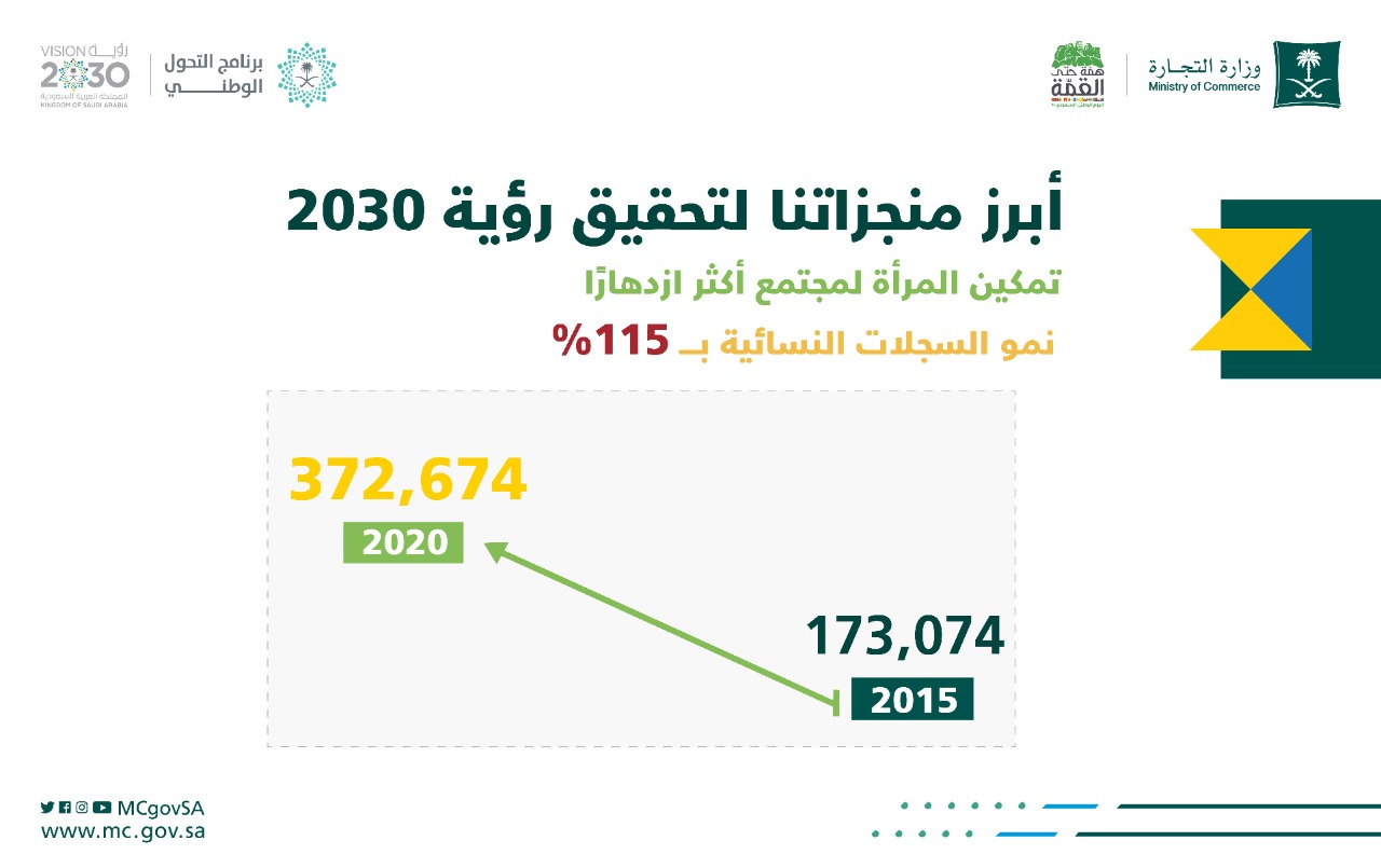 ونمت السجلات النسائية بنسبة 115٪ خلال العام 2020، لتبلغ 372،674 سجل، مقارنة مع 173،074 سجل خلال العام 2015.