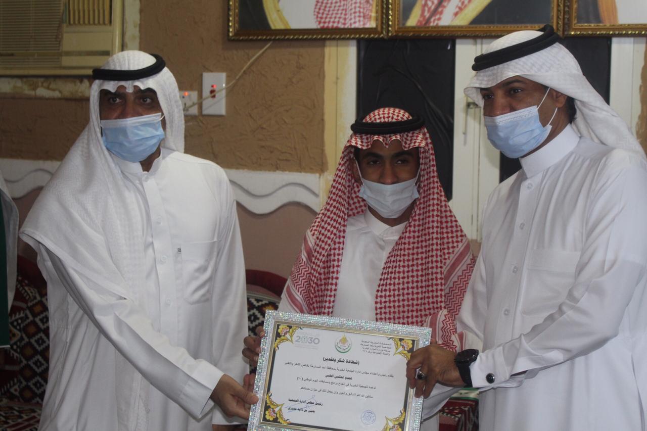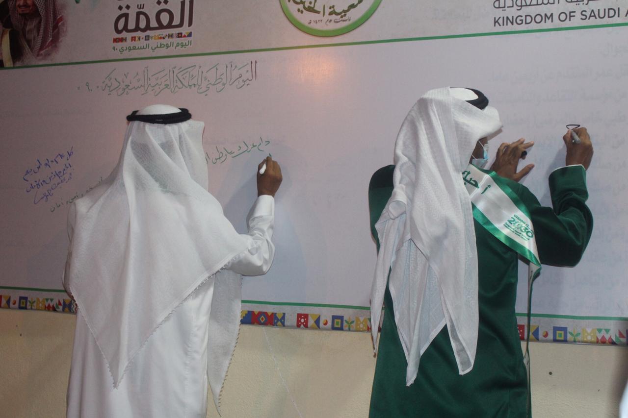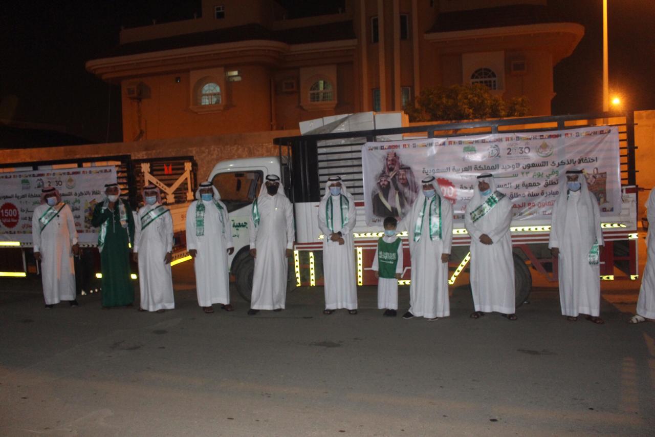 وأوضح رئيس مجلس إدارة الجمعية الأستاذ يحيى داود محزري انه تزامنا مع اليوم الوطني ال 90 للمملكة العربية السعودية وبحضور مدير مركز التنمية الإجتماعية الأستاذ عبدالله الأمير ورئيس لجنة التنمية بالمسارحة الأستاذ محمد عطيف قامت الجمعية بتدشين حملة وطنية تستهدف المستفيدين من خدماتها وتشارك المواطنين فرحتهم بهذه المناسبه حيث أطلقت الجمعية بالتعاون مع جمعية البر بجازان مبادرة “سلة مطلق الخير” وذلك بتوزيع ١٥٠٠ سلة غذائية متكاملة ل ١٥٠٠ مستفيد. فيما شاركت الجمعية عبر منصة تويتر بتفعيل مسابقة وطنية شارك بها أكثر من ٣٠٠٠ مغرد من مختلف أرجاء الوطن حيث تم السحب على خمسة فائزين إلكترونيا. كما تم وضع لوحة جدارية للتعبير عن اليوم الوطني