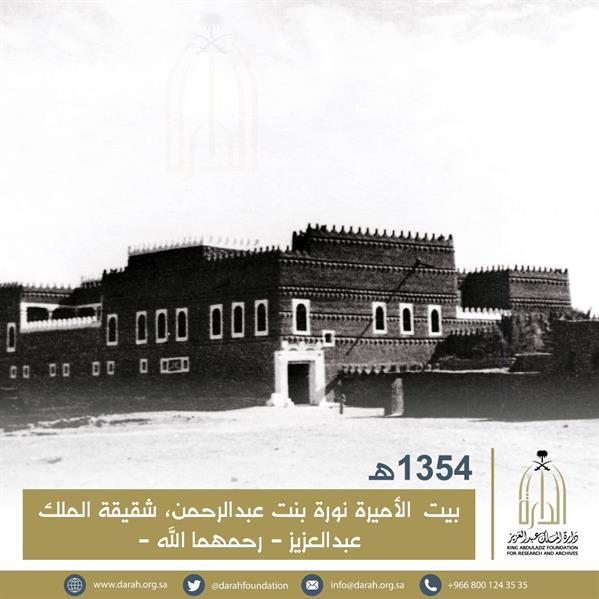 ووصف المؤرخون الأميرة نورة بنت عبد الرحمن، التي ولدت في الرياض سنة 1875م، بسيدة المملكة الأولى، التي تتصف بعقل 40 رجلًا، وذلك لدورها الحيوي في تأسيس المملكة، إذ كانت تعمل مستشارة للملك، مع تكليفها بإدارة أمور القصر الخاصة بالنساء، بالإضافة إلى استقبال ضيوف المملكة من النساء.