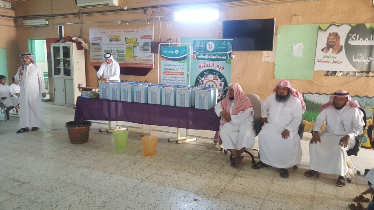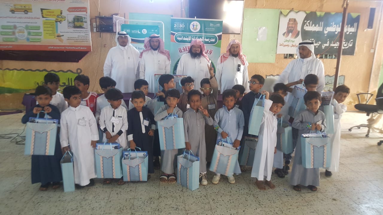 حيث بدأ البرنامج بالطابور الصباحي ثم تعريف الطلاب بمرافق المدرسة ومن ثم تسليمهم الكتب المقررة وهدايا تشجيعية.