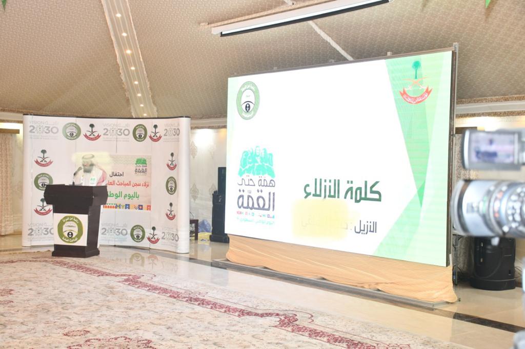 احتفل مساء اليوم نزلاء سجن المباحث العامة بمدينة ابها باليوم الوطني التسعين وذلك بمقرها بأبها حيث عبروا عن احتفائهم بذكرى التسعين مع اتخاذ كافة الإجراءات الاحترازية حيث شاركوا في تقديم فقرات الحفل التي احتوت على كلمة للنزلاء ثم ثلاث قصائد شعرية بين الفصحى والنبطية تلى ذلك عرضُ فلم وثائقي بعنوان أنا سعودي يتحدث عن تاريخ المملكة والمراحل التي مرت بها حتى عصرنا الذهبي الحاضر.