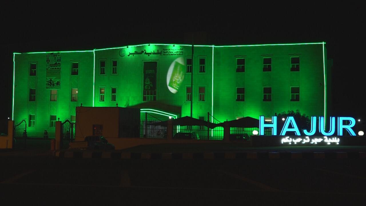 انطلقت مساء أمس فعاليات بلدية حجر بمناسبة اليوم الوطني الـ 90 تحت شعار “همه حتى القمة ” حيث تم توشيح الشوارع والطرق ومباني البلدية و عدد من اعمدة الانارة والميادين والنخل بأكثر من (٦٥٠) علم سعودي و(٢٥٠) لوحة تعبرية و(٣٥٠) لفه من الأشرطة المضيئة و اكثر من (١٦) من المكعبات بروزنامة اليوم الوطني وعدد من مجسمات سيفين ونخلة (١٠٠) مجسم واكثر من (٢٥) اضاءات ليزر .