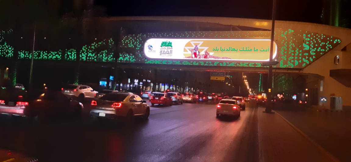 وابتهاجًا باليوم الوطني، زيّنت أمانة الرياض الطرقات والميادين والجسور بأكثر من 57 ألف علم، ونشرت عبر اللوحات الرقميّة المنتشرة في أنحاء المدينة عبارات تؤكّد قّوة التلاحم والترابط ما بين القيادة والشعب.