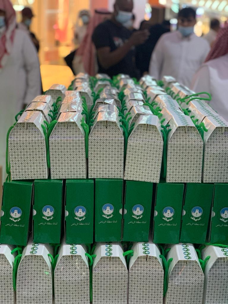 وشملت فعاليّة أمانة الرياض توزيع الهدايا على السكّان في 5 مجمعات تجاريّة كبرى في المدينة، تضمنت الأعلام السعوديّة والأوشحة والبالونات والحلوى بهدف نشر مشاعر الفرح والبهجة بمناسبة اليوم الوطني الـ90.