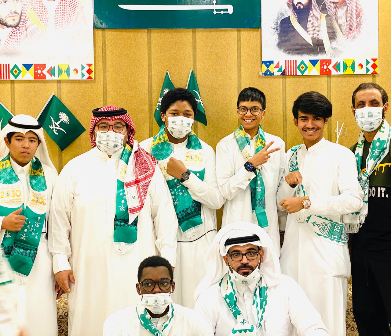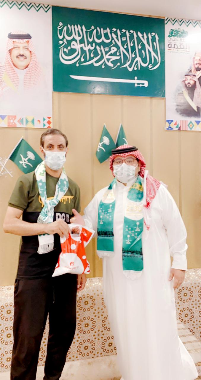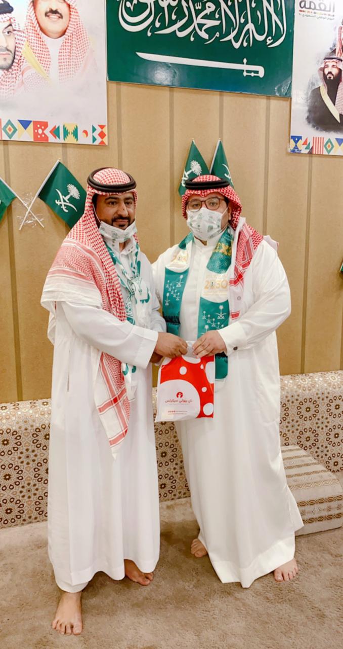وتم خلاله ارتداء شعارات وطنية تمثل علم السعودية وسط أنظار وحضور الجميع الذين عبروا عن سعادتهم بالمشهد الوطني مرددين : “كل عام ووطني بخير” .