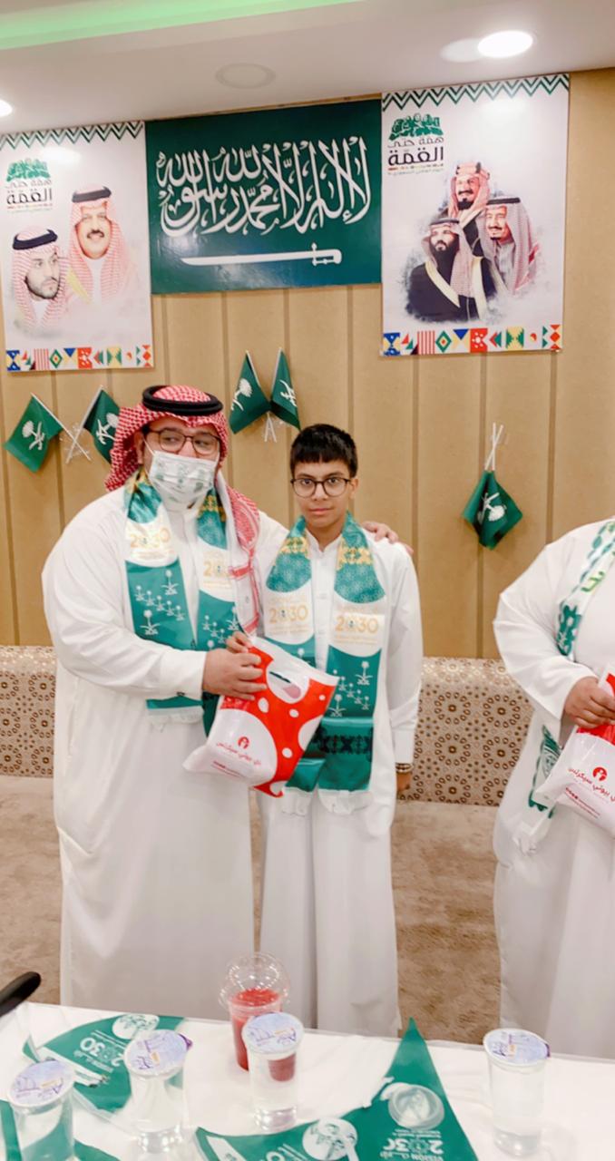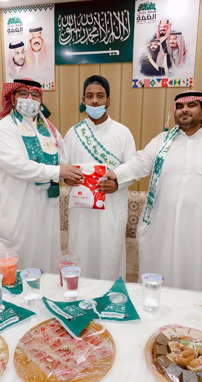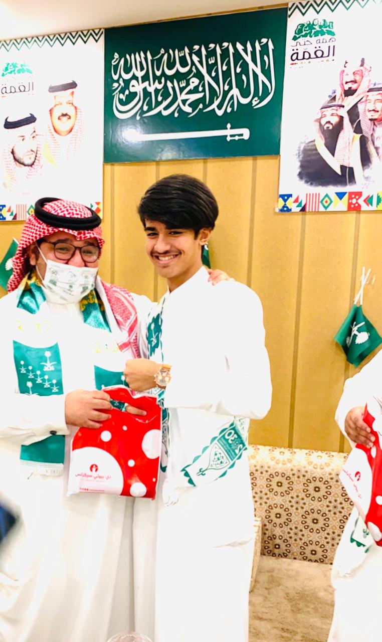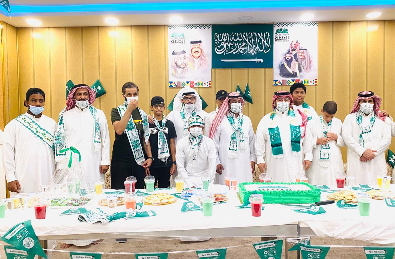 حيث تأتي هذي الاحتفالية إيماناً بأهمية الوحدة الوطنية ونشر الرسائل الهادفة المتزامنة مع احتفالات وطننا الغالي بهذا اليوم وجاء احتفال “الأيتام ” بما يتفق مع قيم المجتمع للتعبير عن حب الوطن وفي الختام تم إلتقاط الصور التذكارية بهذة المناسبة .