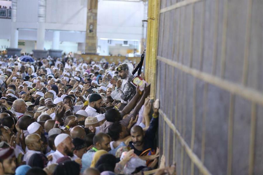 وأظهرت صور، جانباً من تأثر المعتمرين بالأمطار وحرصهم على استكمال الطواف حول الكعبة والتضرع إلى الله بالدعاء.
