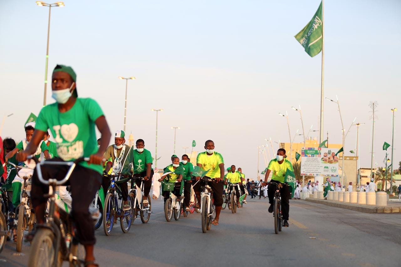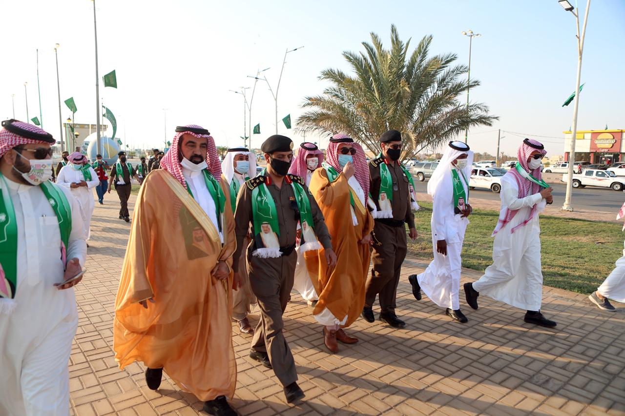واشتملت فعاليات الأمس على رفع العلم السعودي على سارية جادة الوطن، والقيام بمسيرة ” همة حتى القمة “التي ضمت مجموعة من الفرسان والهجانة والدراجات الهوائية , وبمشاركة راجلة من عدد من مديري الجهات الحكومية والأمنية بالمحافظة والأهلية والمواطنين والمقيمين.