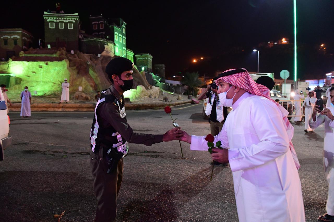 كما تم في ختام جولة العربة توزيع ألف وردة على رجال الأمن البواسل والمواطنين والمقيمين .