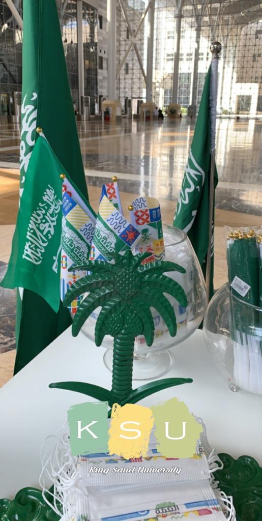 ضمن وسم “همة حتى القمة ” أحتفلت جامعة الملك سعود بالمدينة الجامعية للطالبات (باليوم الوطني السعودي 90 ) عن بعد ، حيث تفخر بأن تكون أحد السواعد القوية المساهمة في تحقيق رؤية الوطن 2030 من خلال احتفالات اليوم الوطني لإحياء مظاهر الإخاء و التكاتف و الانتماء، والتي أقيمت يوم الأربعاء 6/2/1442هـ الموافق 23/9/2020 م، في تمام الساعة8 مساءً من خلال بث الاحتفال عبر قناة الجامعة وخدمات البث المباشر، والبريسكوب، وحساب الجامعة على تويتر وسناب شات، حيث نظمت الجامعة روزنامة للفعاليات الوطنية وحفل أوبريت غنائي ومشاركات متنوعة من منسوبيها ومنسوباتها في مختلف الكليات من خلال إقامة العديد من البرامج والفعاليات والمسابقات والندوات بهذه المناسبة المجيدة. وايضا إقامة عددا من الفعاليات في جادة الجامعة حيث تم توزيع شالات وأعلام وكمامات تحمل شعار “همة حتى القمة”، وتم بعد ذلك إطلاق 4000 بالونا في مدخل البهو الرئيس للجامعة.