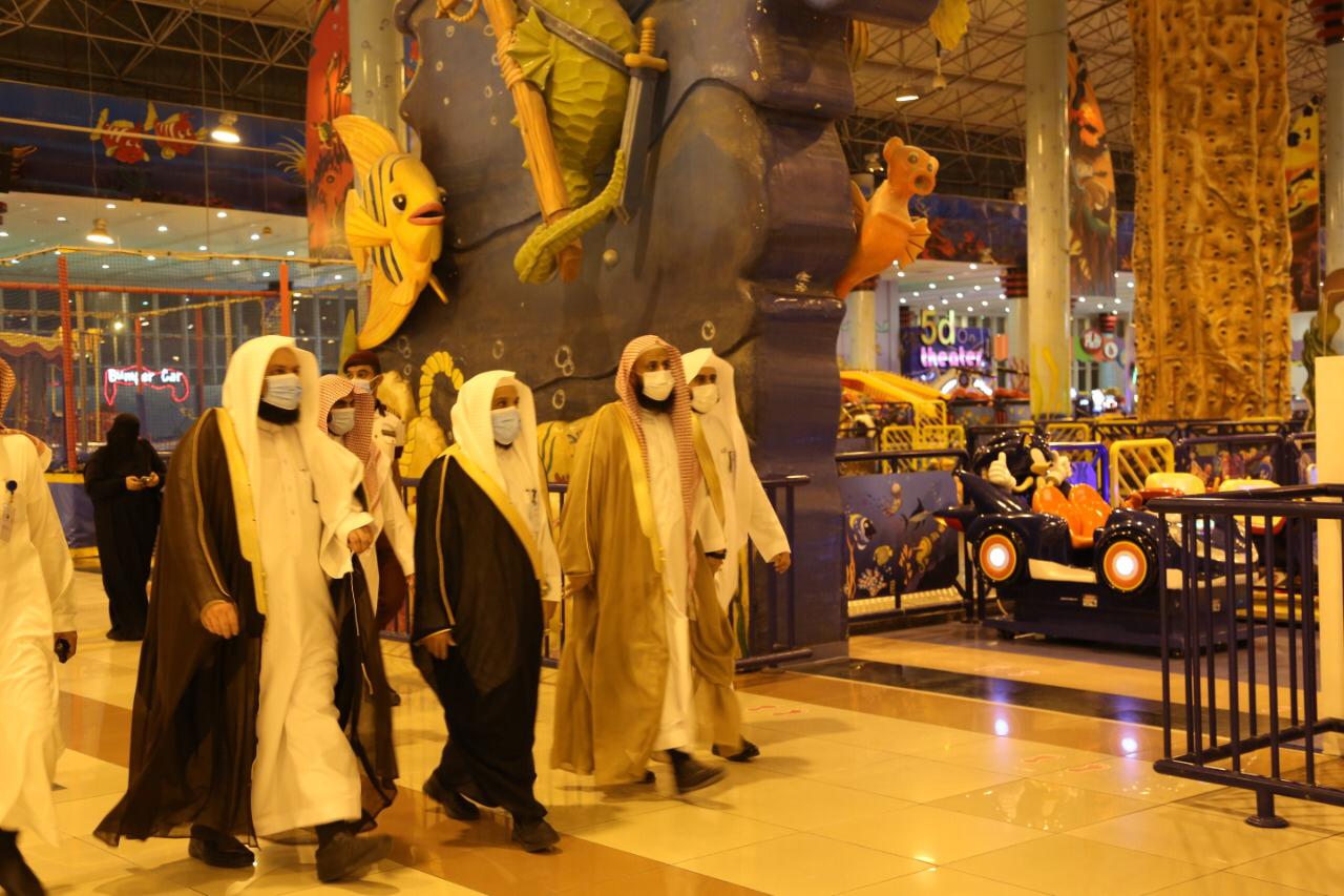 كما قام فضيلته بجولة على مجمع غرناطة مول والتنبيه لصلاة المغرب، ومن ثم جولة على مجمع العثيم مول والتنبيه لصلاة العشاء، والتقى مسؤولي المجمعين مشيداً بتعاونهم مع فرق الهيئة الميدانية.