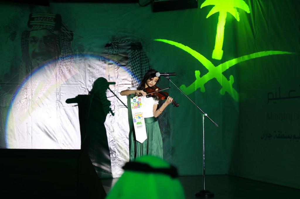 توالت عقب ذلك فقرات الحفل والذي قدمته الطالبة نوال عبدالعزيز على لوحات ترحيبية ووطنية وتهنئة للوطن من طلاب التربية الخاصة وفقرات أدبية تناوب على تقديمها سلمى منصور والشاعر أيمن عبدالحق والطالب عبدالله الزهراني كما قدمت الطالبة لانا عبدالله أبوطالب عزفاً موسيقياً رائعاً للنشيد الوطني ، واختتم الحفل بلوحة وطنية فنية من كلمات الشاعرين الحسن خيرات ومجيب الرحمن مذكور جسدت معاني الولاء والوفاء لهذا الوطن العظيم.