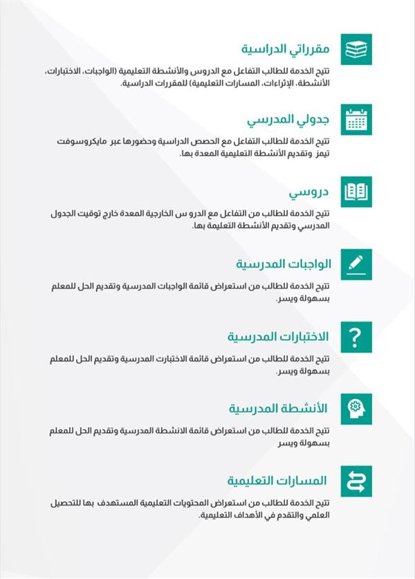ويعزز التطبيق مفهوم التعلّم النشط، والتعليم عن بُعد، حيث يمكن لكل طالب أو ولي أمر تنزيله وتثبيته على الجهاز الخاص به، واستخدامه في أي وقت وعلى مدار اليوم، وذلك امتداداً لرحلة التعليم الإلكتروني التي اتخذتها وزارة التعليم في هذه المرحلة، وتعمل على تطويرها بشكل مستمر.