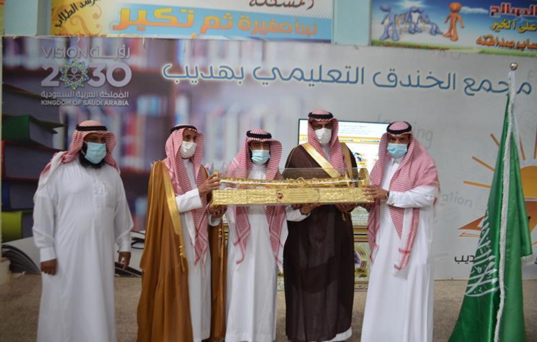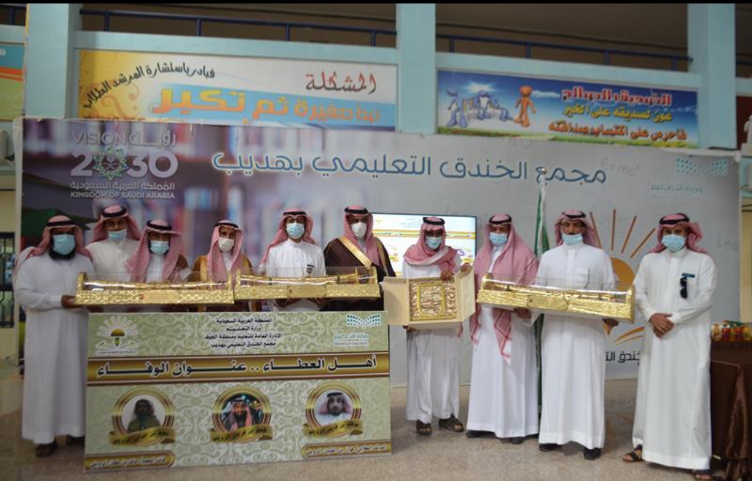 كرّم مجمع الخندق التعليمي بهديب ؛ ضمن برامجه الاجتماعية ، بحضور مدير مكتب التعليم بصوير الأستاذ محمد بن حميدي الرويلي ، والشيخ شايش بن ناصر الخضع شيخ عشيرة الفرجة ، والشيخ قابل بن عياط الجزله معرف فخذ السواحلة ؛ أولياء أمور الطلاب المتبرعين بأعضائهم لذويهم ، وذلك في حفل مبسط مع تطبيق التباعد الاجتماعي واتخاذ كافة الإجراءات الاحترازية لمنع تفشي فيروس كورونا المستجد .