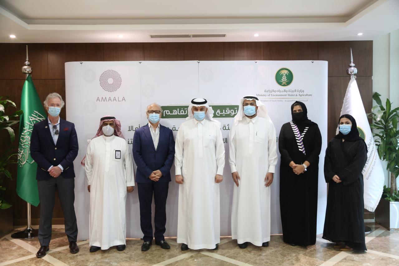 وقع المذكرة وكيل الوزارة لشؤون البيئة الدكتور أسامة بن إبراهيم فقيها، والرئيس التنفيذي لشركة أمالا الأستاذ نيكولاس نيبلز.