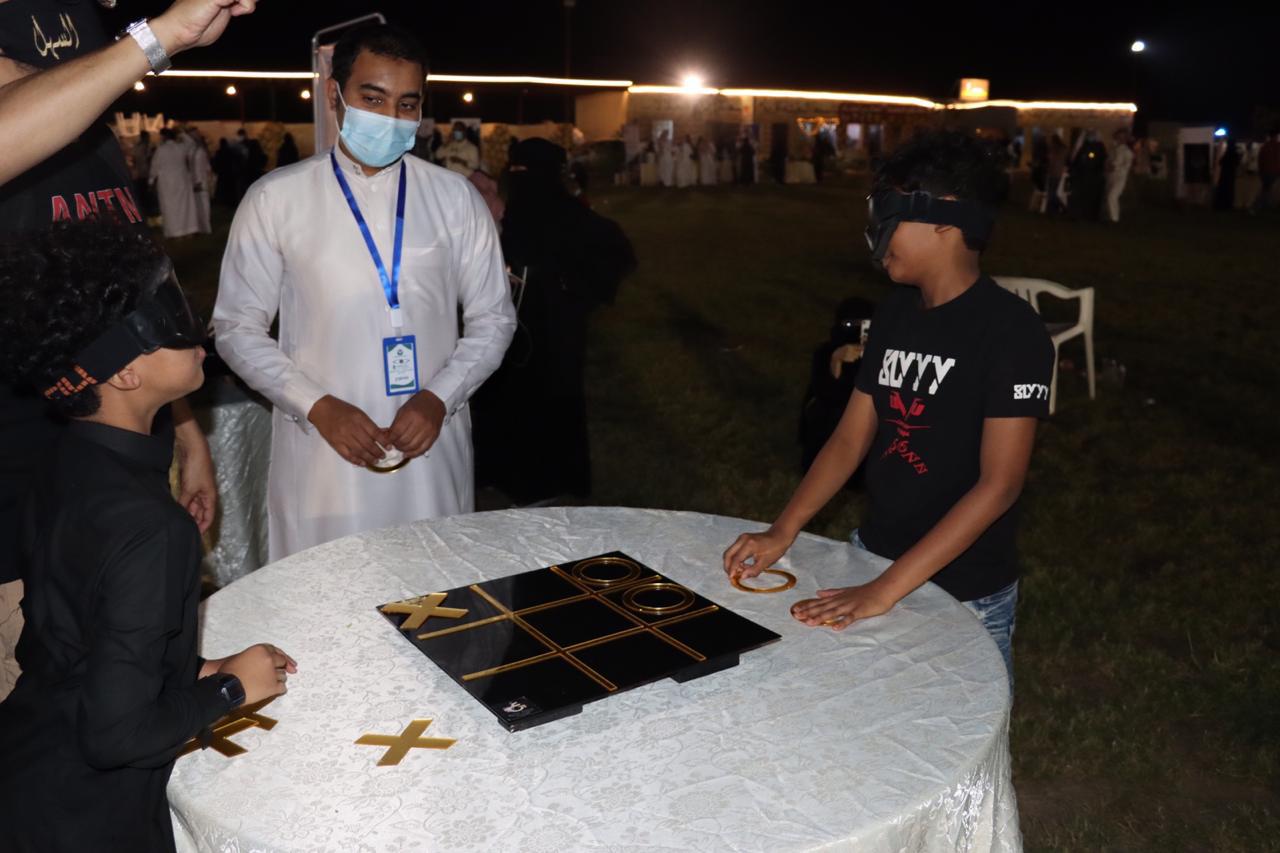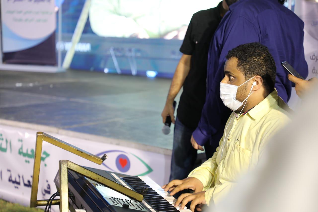 و تواجدت بعض مستفيدات الجمعية بأركان ابداعية و قدم فواز زيلعي أحد مستفيدي الجمعية فقرة تعريفية بالعصا البيضاء و قام الكفيفين محمد عبد الحق و عادل بوصلة فنية جميلة عبارة عن عزف و غناء بطريقة إبداعية .