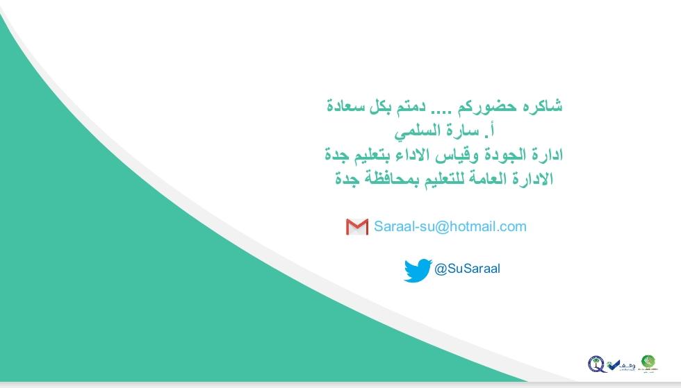 الملتقى السنوي للجودة في التعليم ، وضمن الجهود الكبيرة والمتواصلة التي تقدمها مشرفة قياس الاداء بتعليم جدة الأستاذه سارة السلمي في مجال نشر الجودة ومؤشرات قياس الأداء، فقد شاركت السلمي بورقة عمل متميزة بعنوان ( ضمان جودة التعليم عن بعد ) ناقشت فيها التحديات وآليات التحسين والتطوير لتجويد التعليم عن بعد ، كما تناولت الورقة دور الأسرة في ظل جائحة كورونا في ضمان جودة التعليم عن بعد .