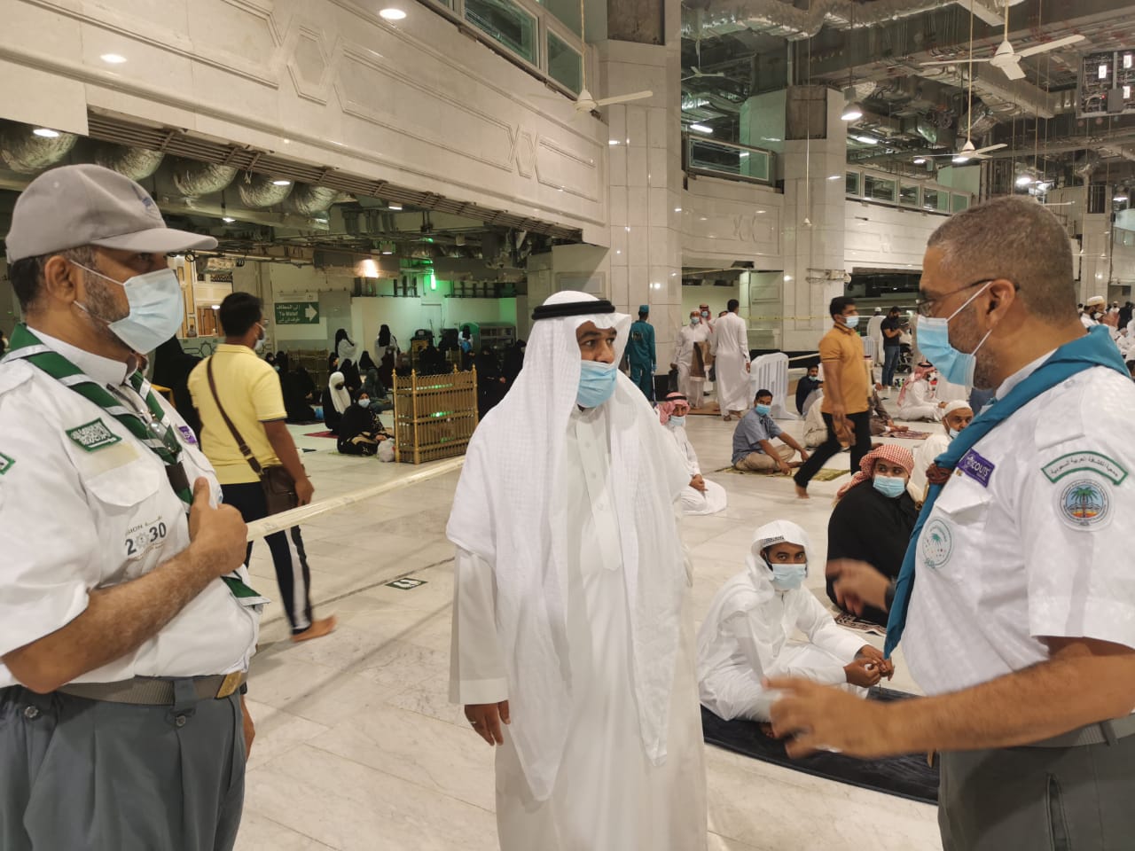 وأوضح قدير الى أن الإدارة سخرت 40 قائداً كشفياً متطوعاً لمساندة الرئاسة العامة لشؤون المسجد الحرام والمسجد النبوي الشريف في تطبيق الإجراءات الاحترازية بالتباعد الجسدي والاجتماعي بين المصلين في المسجد الحرام ضمن مبادرة “معاً محترزون” ، منذ أن تمت الموافقة الكريمة من مقام خادم الحرمين الشريفين الملك سلمان بن عبدالعزيز – حفظه الله – بالسماح لعودة العمرة تدريجياً وفق الإجراءات الاحترازية ، حيث يعمل القادة الكشفيين من بعد صلاة العصر يومياً على التأكد من التزام المصلين والمعتمرين بالإجراءات الاحترازية والتباعد المكاني ومنع حالات التكدس والزحام والتقيد بالمسارات الافتراضية من خلال الملصقات الموضحة على صحن المطاف مما يسهم بانسيابية عملية الطواف والسعي وتيسيرها على المعتمرين.