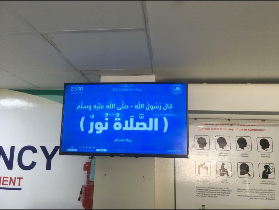 ونشرت الهيئة عدداً من الرسائل التوعوية والوقائية المشتملة على عبارات توعوية عن أهمية الصلاة وعظم الشعيرة المباركة عبر شاشات الأسواق والمراكز التجارية.