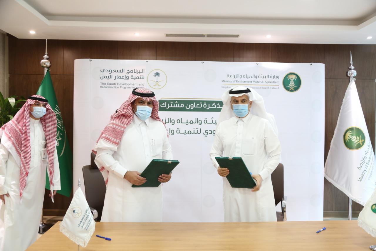 واختتم اللقاء بتوقيع مذكرة تعاون مشترك بين وزارة البيئة والمياه والزراعة السعودية والبرنامج السعودي لتنمية وإعمار اليمن والتي ستساهم في تحقيق التوزان البيئي والمعيشي والاقتصادي في الجمهورية اليمنية، وبناء القدرات المختصة في المجالات البيئية والزراعية والحيوية، بما يحسن معيشة أهالي مختلف المحافظات اليمنية.