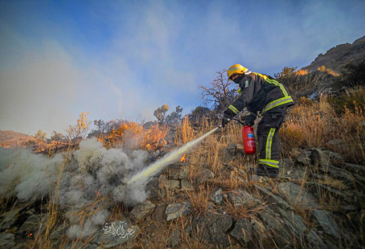 التفاصيل الكاملة لإخماد فرق الدفاع المدني لـ”حريق جبل غلامة” بـ”تنومة”