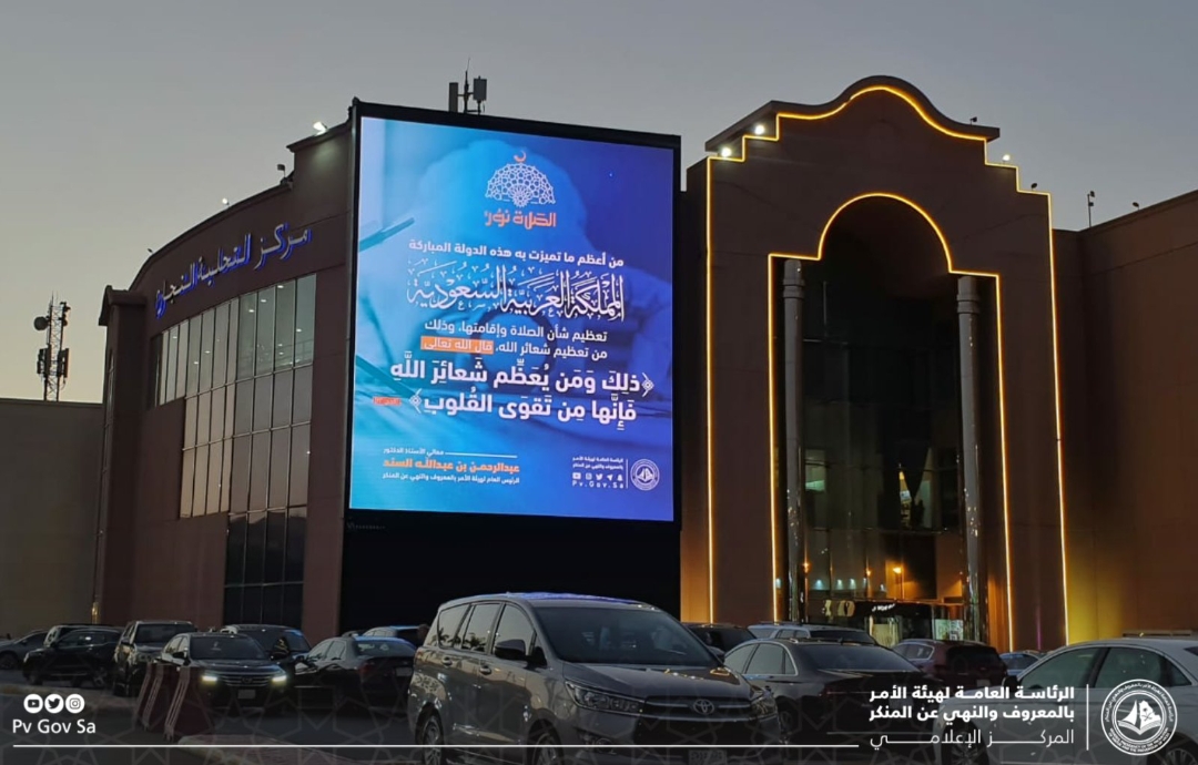 عرضت هيئة الأمر بالمعروف والنهي عن المنكر بمحافظة جدة المحتوى التوعوي لحملة (الصلاة نور ) على الشاشات الرقمية في محيط جامعة الملك عبدالعزيز في عدد من الشاشات المنتشرة داخل الحرم الجامعي، كما نشرت وسائلها التوعوية في الأسواق والمجمعات التجارية الكبرى في محافظة جدة وذلك في إطار التعاون المشترك بين فرع الرئاسة العامة لهيئة الأمر بالمعروف والنهي عن المنكر بمكة المكرمة والجهات الحكومية والأهلية ذات العلاقة.