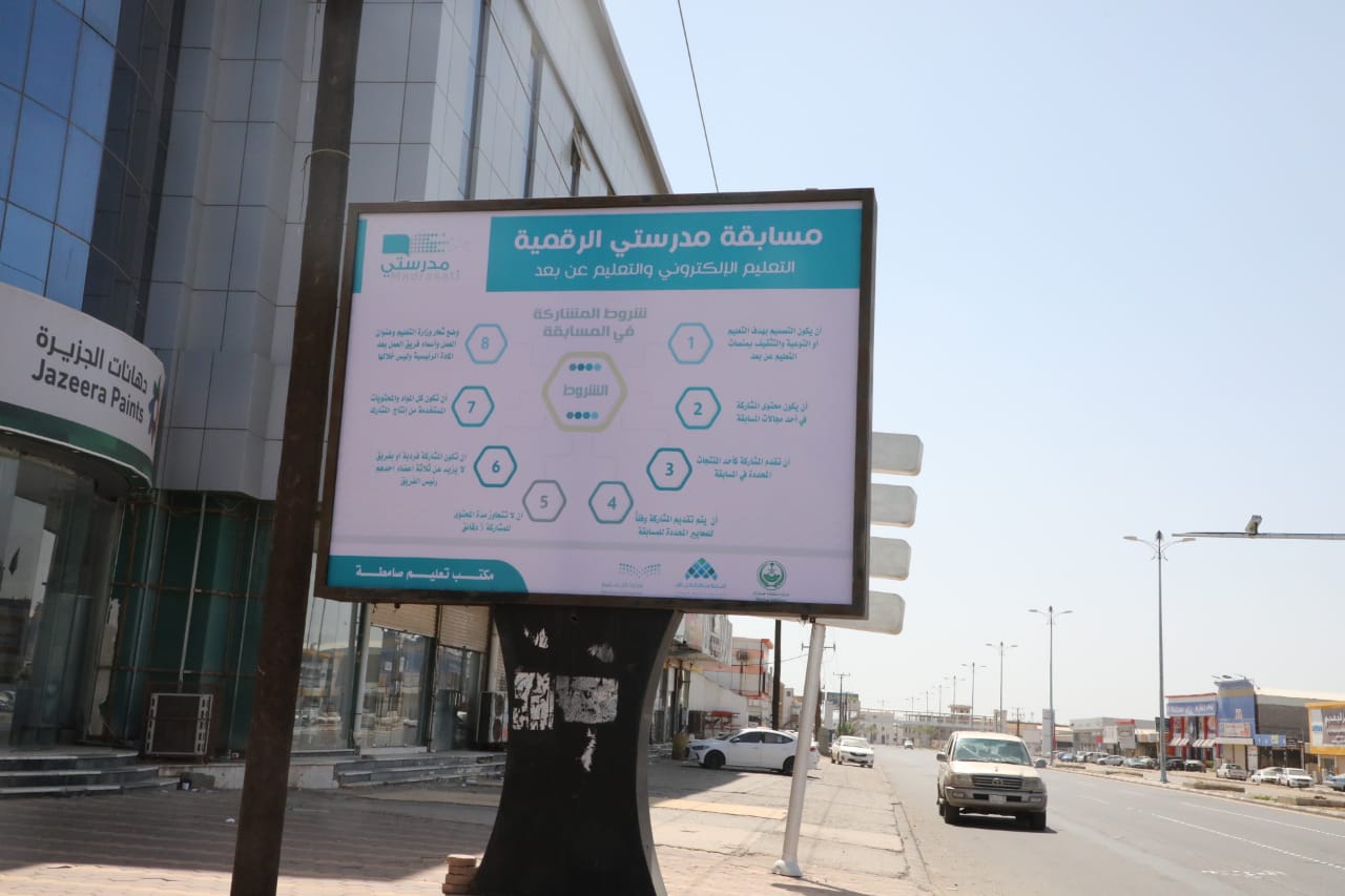 نفذت بلدية محافظة صامطة تركيب ووضع عدد من اللوحات الدعائية في عدد من شوارع وطرق المحافظة في إطار شراكتها مع مكتب تعليم صامطة للتعريف بمسابقة مدرستي الرقمية ونشر ثقافة التعليم الالكتروني والتعليم عن بعد وذلك بهدف ايصالها لجميع فئات المجتمع.