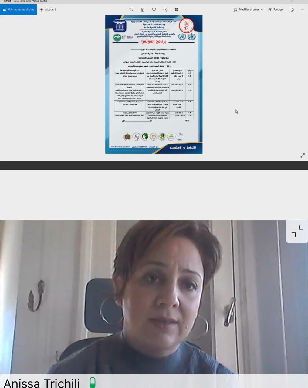 فيما قدمت أ. أنيسة التريشيلي , قاضية ووكيل رئيس بالمحكمة الابتدائية منوبة , في ورقتها ” جائحة كورونا وتأثيرها على الحريات ” , و بحثت المحامية مروى طلال درغام” الأثار القانونية لجائحة كورونا على الالتزامات التعاقدية المحلية والدولية ” , فيما قدمت أ.د رشا علاء الدين , رئيسة قسم القانون الدولي الخاص بحقوق المنصورة ورقة ” آثار جائحة كورونا على التحكيم التجاري الدولي ” وبحث د. محمد عبد الجليل الشيخ القاضي رئيس مركز نواكشوط للدراسات القانونية والاجتماعية في موريتانيا ورقة عمل بعنوان “أزمة كورونا وإشكالية الملائمة بين القوانين الوطنية والقانون الدولي في مجال احترام حقوق وحريات الإنسان ” , فيما قدم آية عثمان, ناشط جمعياتي بفرنسا , “تأثيرات جائحة كورونا على المهاجرين ” وتناول د. حسان الترك رئيس قسم القانون كلية الشرق الأوسط بالعراق , ” جائحة كورونا وتداعيتها على الحقوق والحريات العامة بالعراق “.