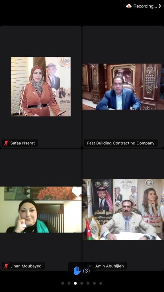 و رعاية سعادة المهندس السفير / فتحي عفانة – الرئيس التنفيذي لفاست لمقاولات البناء – و سعادة الدكتور / أمين أبو حجلة – ( رئيس فرسان السلام رئيس المؤتمر ) – و بحضور ضيوف الشرف صاحبة السمو الاميرة / سهيلة آل فيصل –