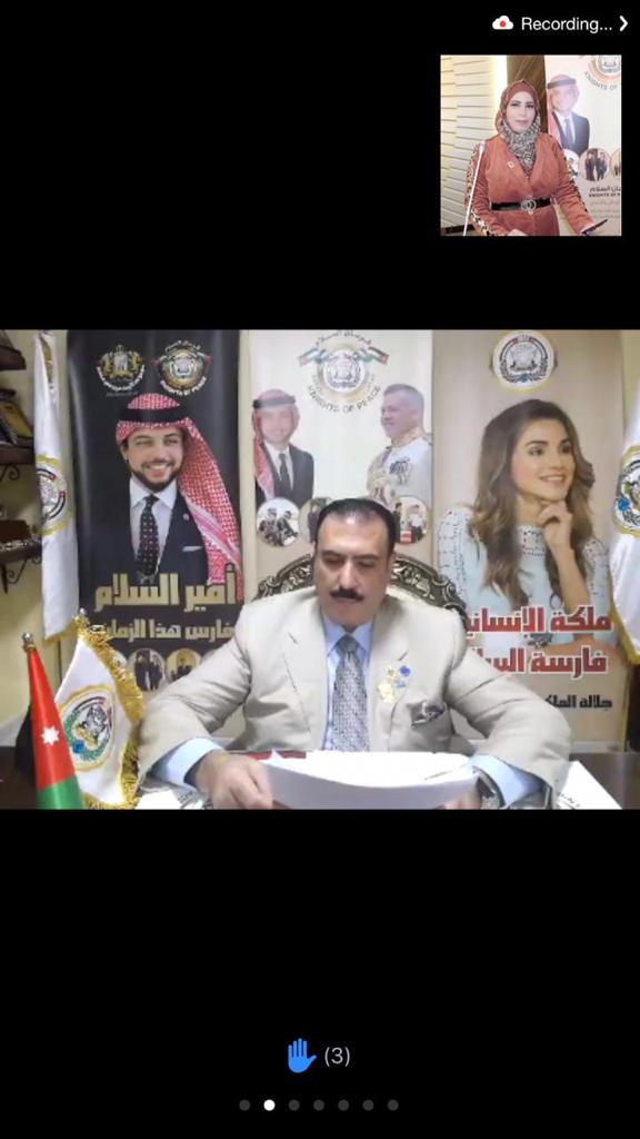 و تم عرض فيديو خاص عن إنجازات المهندس / فتحي عفانة ( الانسانية ) – و تم تكريمه بلقب – ( فارس العمل الإنساني ٢٠٢٠ ) على المستوى الدولي مقدماً فرسان السلام .
