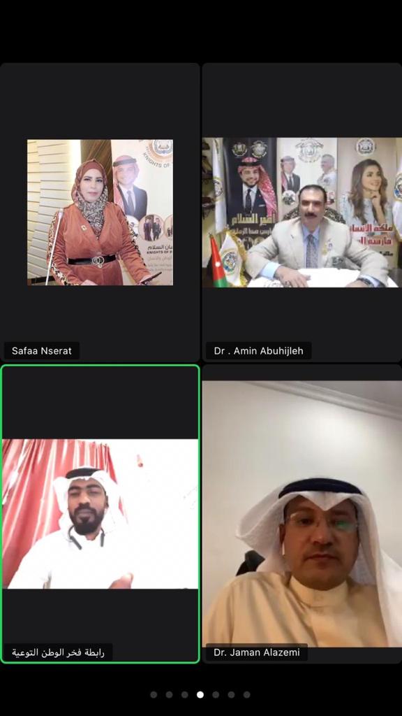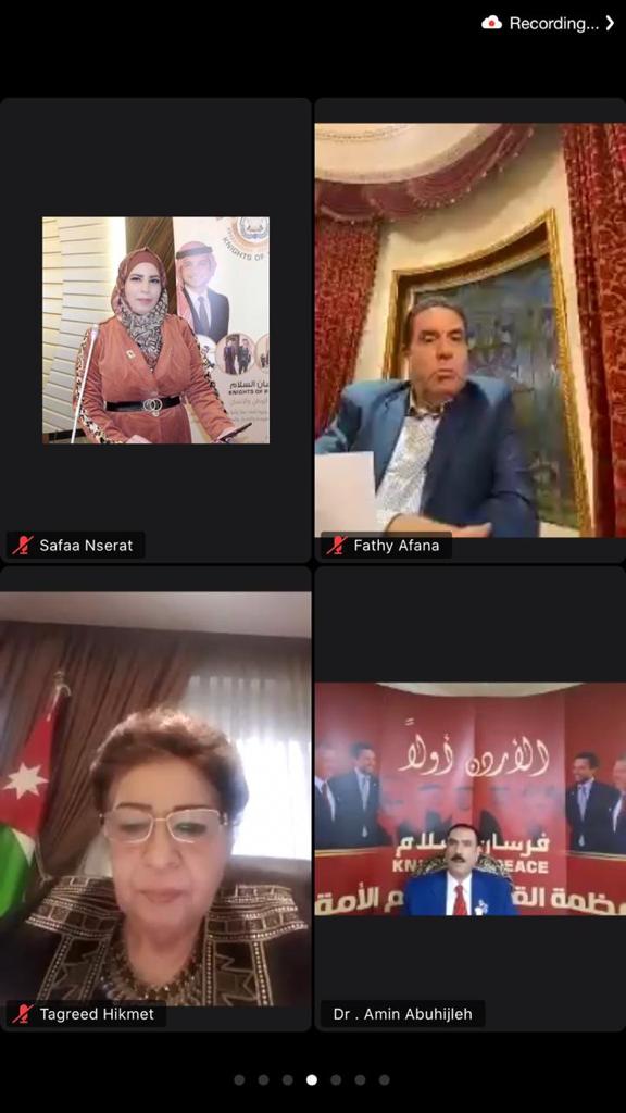و شكره الجزيل لسعادة الدكتور أمين أبو حجلة – رئيس فرسان السلام رئيس المؤتمر القائد الملهم ) – و لجهوده المباركة الدولية المشرفة لجمع هذه الكوكبة المميزة في حدث هام .