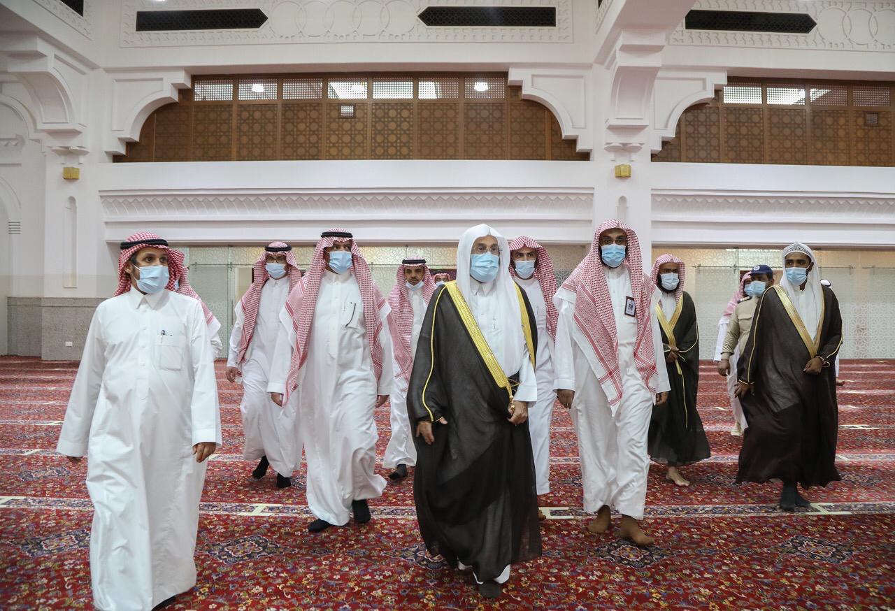 واطمأن معاليه على التجهيزات والاستعدادات التي قام بها فرع الوزارة بالمنطقة عبر شركات الصيانة والتشغيل، والانتهاء من عمليات التعقيم والنظافة، وتوفير كافة المستلزمات المطلوبة لضمان سلامة مرتادي بيوت الله، كما اطلع على سير العمل في مشروع توسعة مسجد القبلتين.