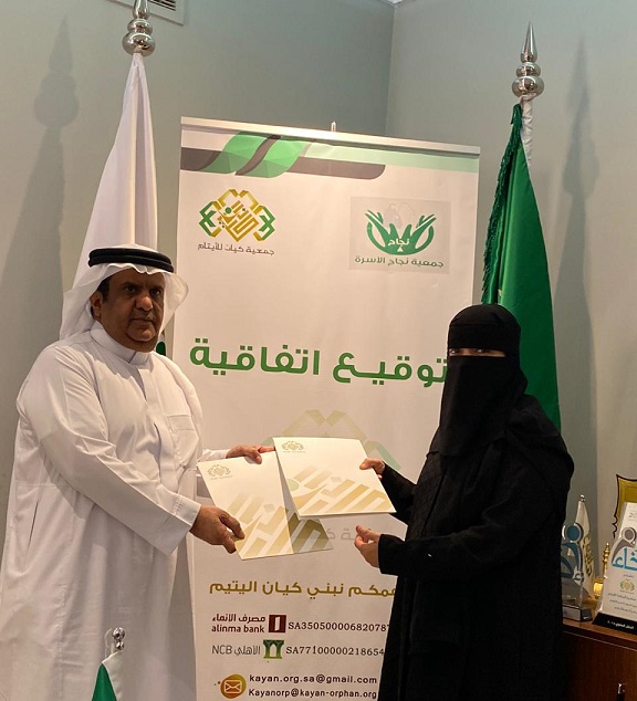 هذا وقد وقعت الأستاذة سمها بنت سعيد الغامدي رئيس مجلس إدارة جمعية كيان مع ممثل جمعية نجاح الأسرة الأستاذ سعود الأسمري مدير العلاقات العامة، حيث أن جمعية كيان مؤسسة خيرية تعنى بتقديم كافة أوجه التعاون والتمكين للأيتام ذوي الظروف الخاصة وحيث أن جمعية نجاح الأسرة تسعى إلى تقديم تعزيز الترابط الأسري وتمكين القيم الإيجابية ورغبة في تفعيل الاستراتيجية الوطنية للتكامل بين القطاعات فقد التقت إرادة الطرفين وتم الاتفاق بينهما.