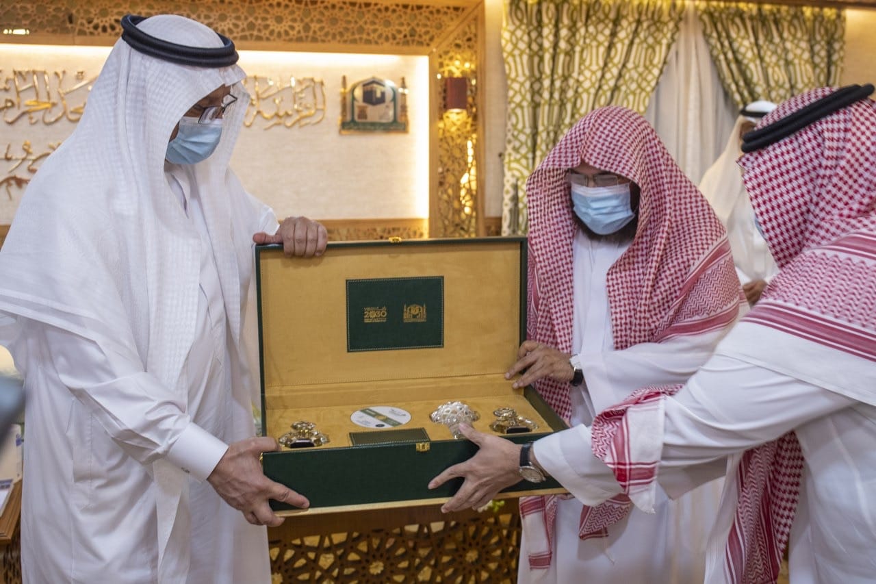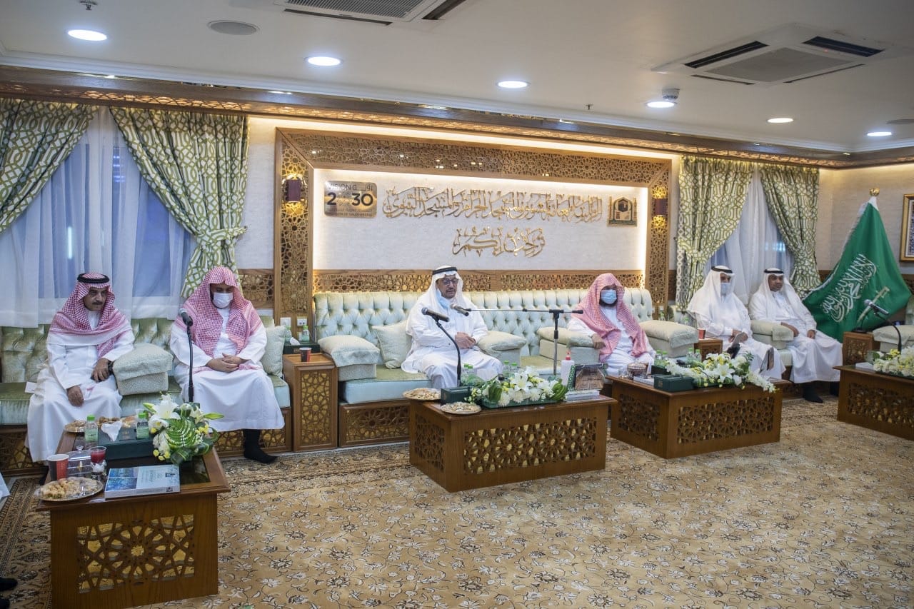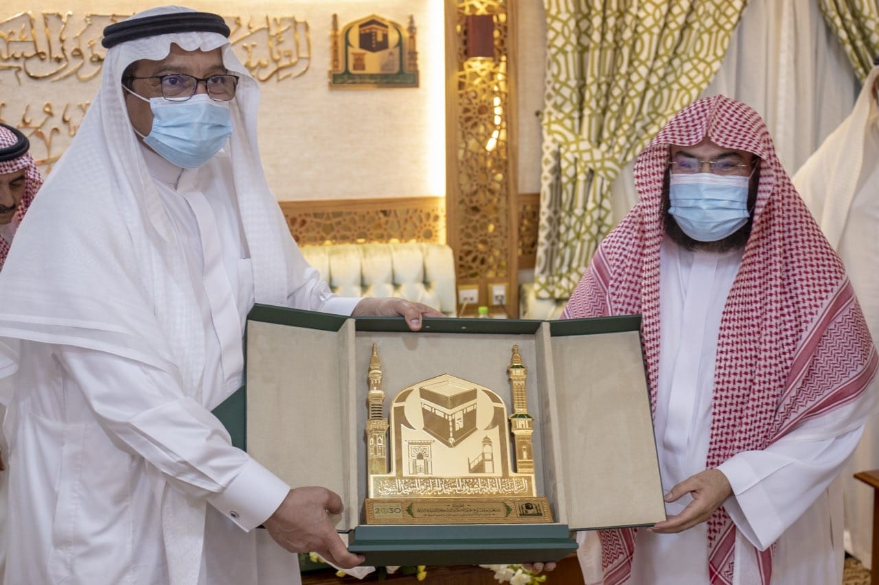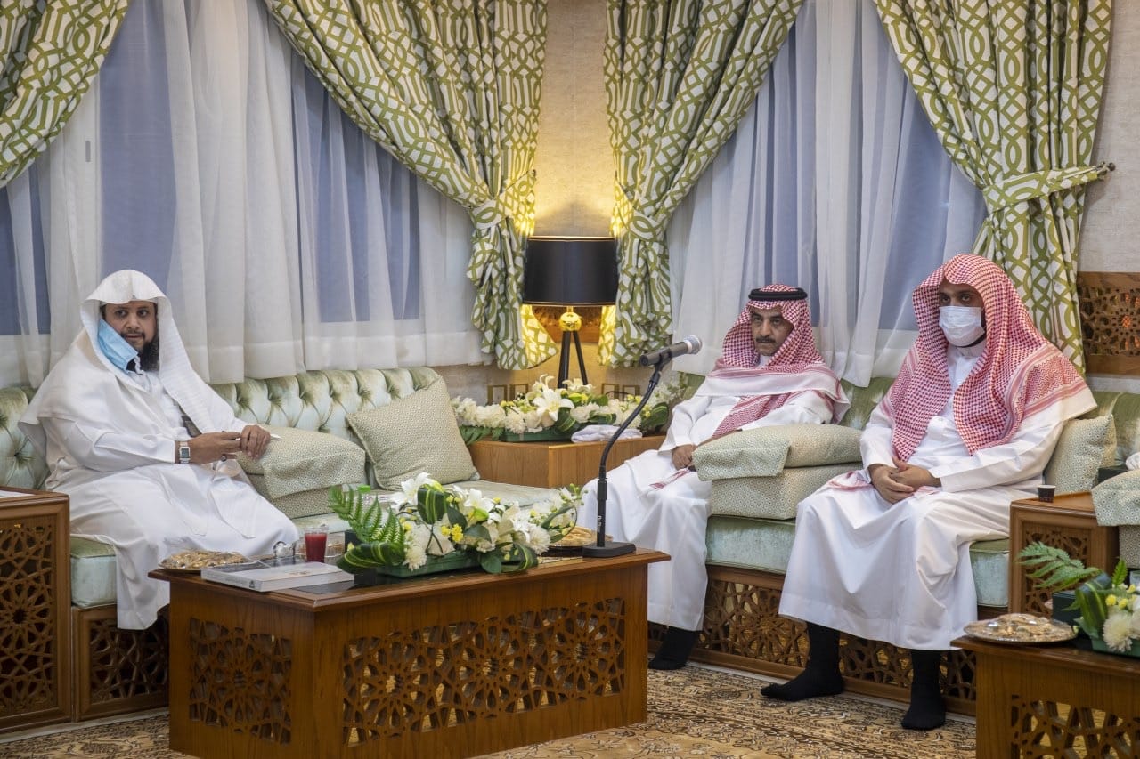 استقبل معالي الرئيس العام لشؤون المسجد الحرام والمسجد النبوي الشيخ الأستاذ الدكتور / عبدالرحمن بن عبدالعزيز السديس – بمكتبه بالحرم المكي الشريف معالي وزير التعليم الدكتور / حمد بن محمد آل الشيخ , بحضور معالي رئيس جامعة أم القرى الأستاذ الدكتور / معدي بن محمد آل مذهب ، و وكيل الرئيس العام لشؤون المسجد الحرام سعادة الأستاذ / أحمد بن محمد المنصوري ، و وكيل الرئيس العام للشؤون الإدارية و المالية سعادة الدكتور / سعد بن محمد المحيميد ، و عدد من الوكلاء ،