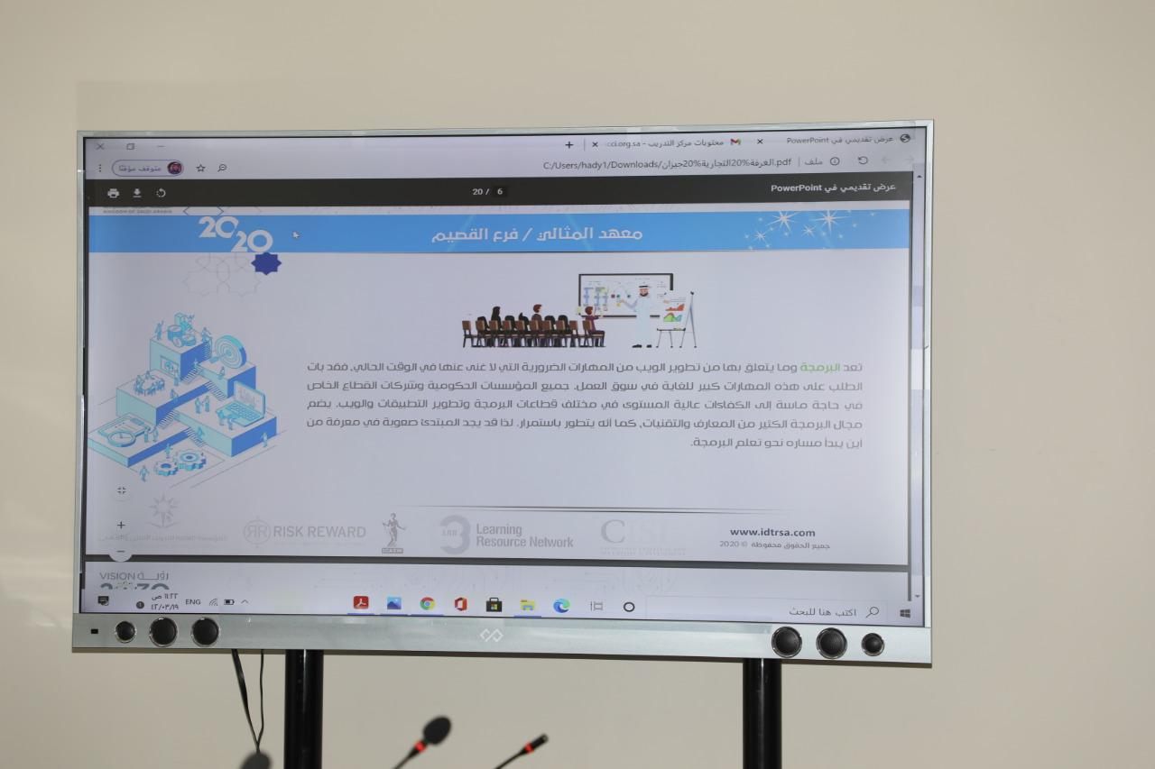من جانبها قدمت الأستاذة جوهرة المجلي عرضاً مرئياً لمسارات ومجالات التدريب بالمركز والأهداف التي يسعى لتحقيقها نحو تنمية وطنية شاملة ومتكاملة تواكب النهوض التنموي المستدام والسعي نحو تخريج كفاءات وطنية متخصصة ورائدة متميزة في مختلف المجالات من أبرزها” الحاسب الآلي، تطوير الذات, التقنية والبرمجة، الإدارة والمالية، البرامج الأمنية الخاصة, السفر والسياحة، القانون”، مشيرة إلى أن المركز يقدم العديد من الخدمات في جوانب تطبيق نظم الإدارة والتميز المؤسسي وإنشاء البنية التحتية والتحول الرقمي والتدريب الالكتروني وتصميم المشاريع المتخصصة وبرامج الاتيكيت والبروتوكولات الدبلوماسية، ونوهت إلى أن المركز نفذ خلال العام الحالي 534 دورة عامة وخاصة و150 مبادرة اجتماعية ولديه 15 منصة الكترونية معتمدة.