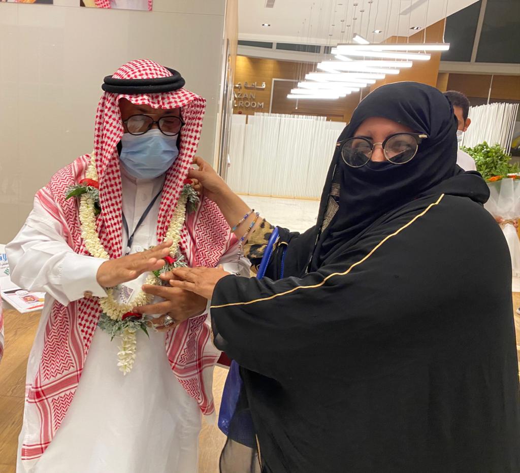 الفنانة التشكيلية المعروفة الأستاذة بشرى السيد سفيرة الفن التشكيلي والنوايا الحسنة تكرم الزميل إبراهيم النعمي