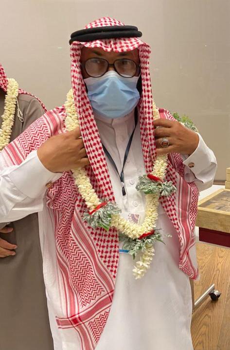على هامش احتفال فرع الجمعية السعودية للفنون التشكيلية بجازان ( جسفت جازان ) بتدشين المعرض التشكيلي الأول لأعضاء الجمعية ، تحت عنوان ( انطلاقة ) ، وذلك عند الساعة 7.30 من مساء اليوم الخميس 19 / 3 / 1442هـ الموافق 5 / 11 / 2020 م ، بمقر فندق نوفوتيل جازان ، والذي شارك في المعرض 32 فنان قامت الفنانة التشكيلية المعروفة الأستاذة بشرى السيد سفيرة الفن التشكيلي والنوايا الحسنة بتكريم الزميل الكاتب الصحفي إبراهيم النعمي عضو هيئة الصحفيين السعوديين وعضو رابطة الإبداع الخليجي وعضو جمعية المتقاعدين بمنطقة جازان بطقم سيف مذهب وعقد من الفل ذلك نظير إسهاماته واهتمامه بالفن التشكيلي والكتابة عن الفنانين التشكيليين وابرازهم وعمل اللقاءات الصحفية معهم.