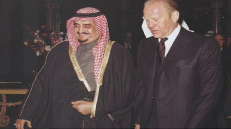 أظهرت صورة نادرة، الملك فهد بن عبدالعزيز، رحمه الله، مع الرئيس الأمريكي السابق جيرالد فورد في الرياض عام 1399هـ (1979م).